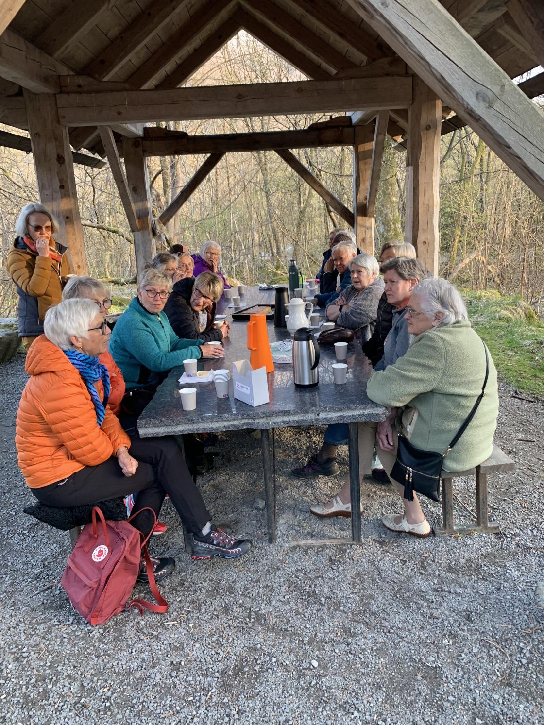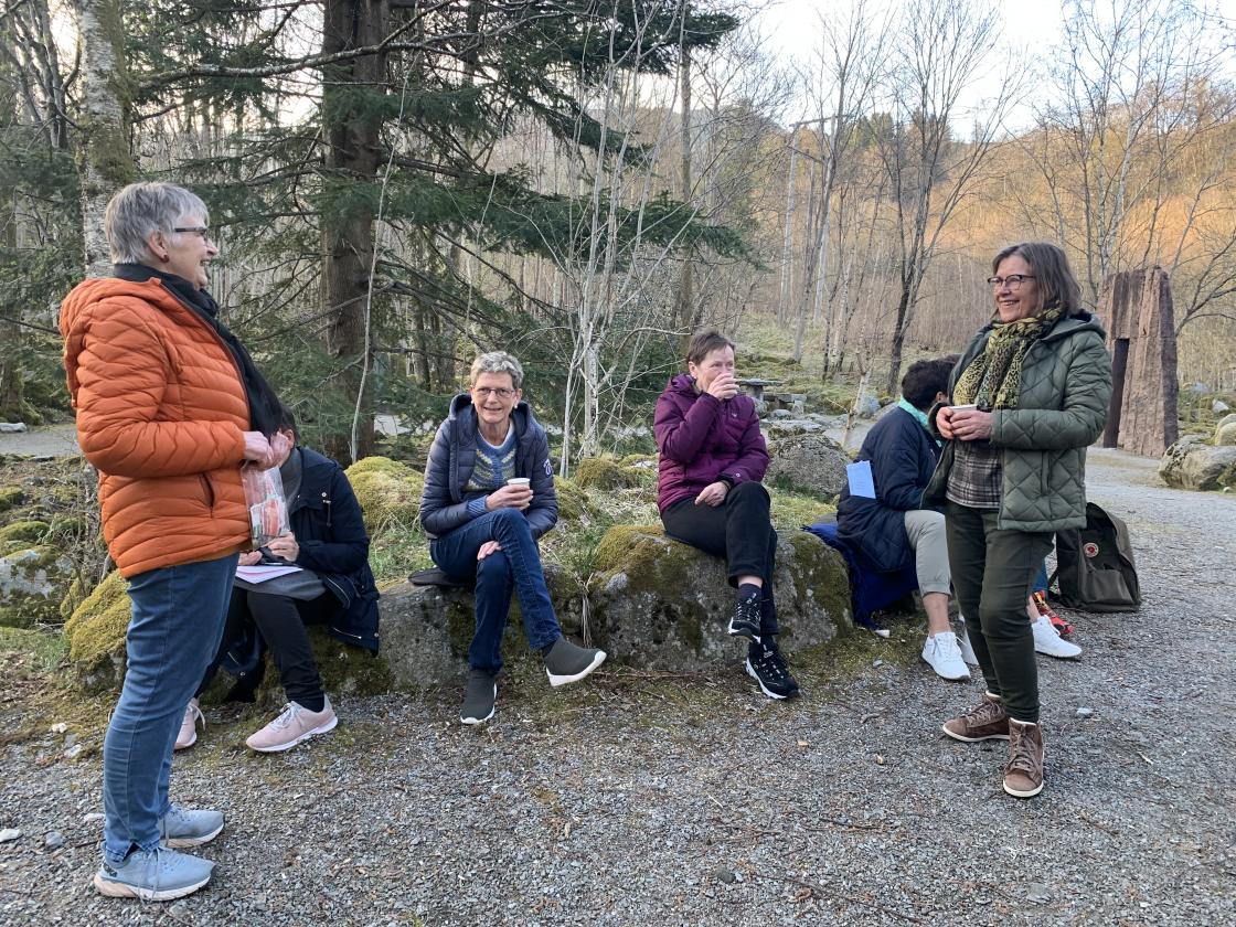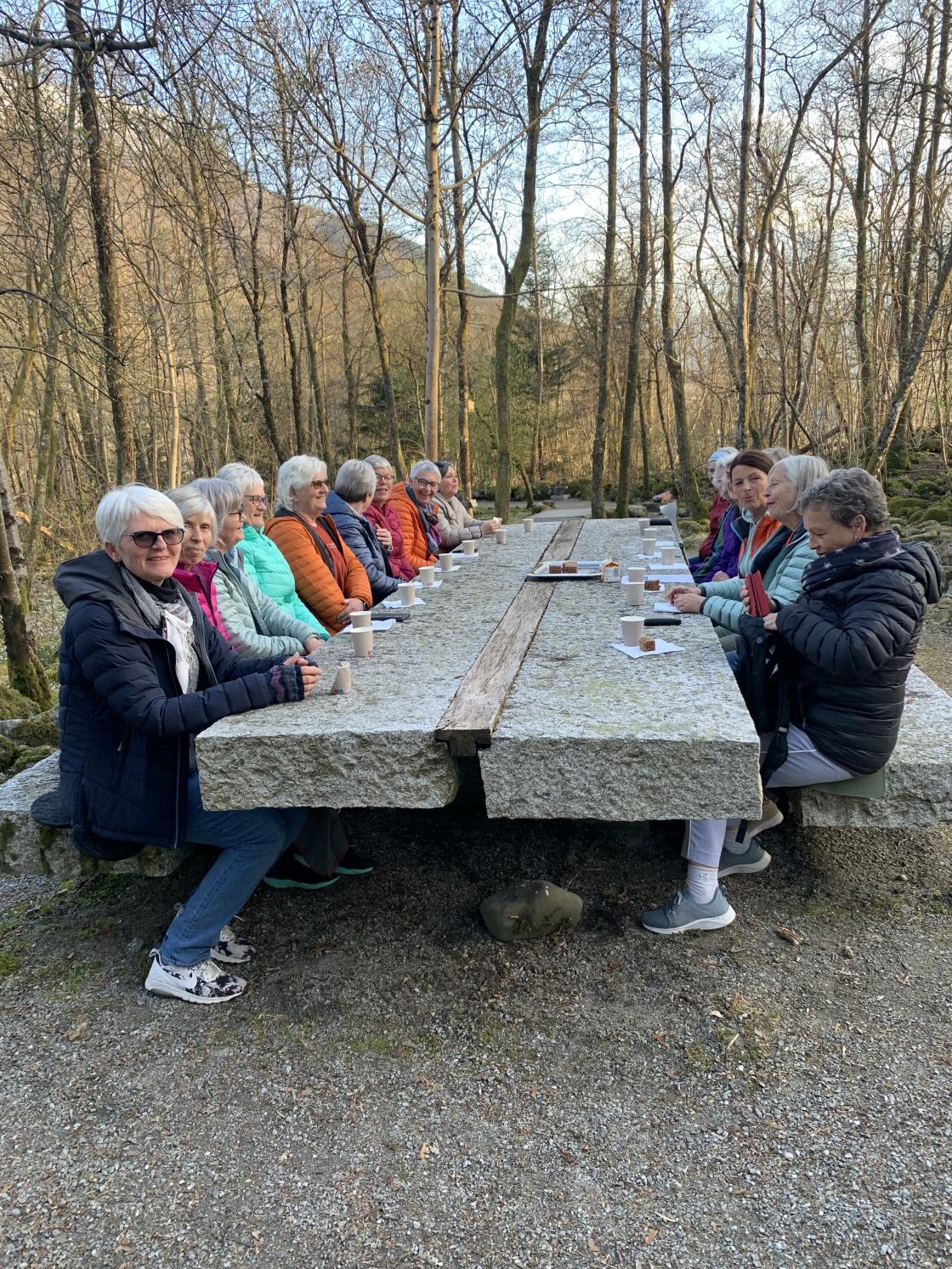 Etterpå gjekk vi den korte turen ned til Steinparken der det var servering av kaffi og kaker, samt blomelotteri som gav ei fint overskot i klubbkassa.