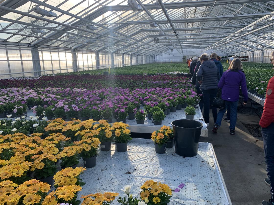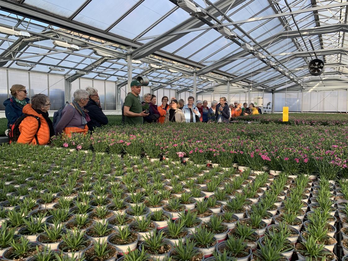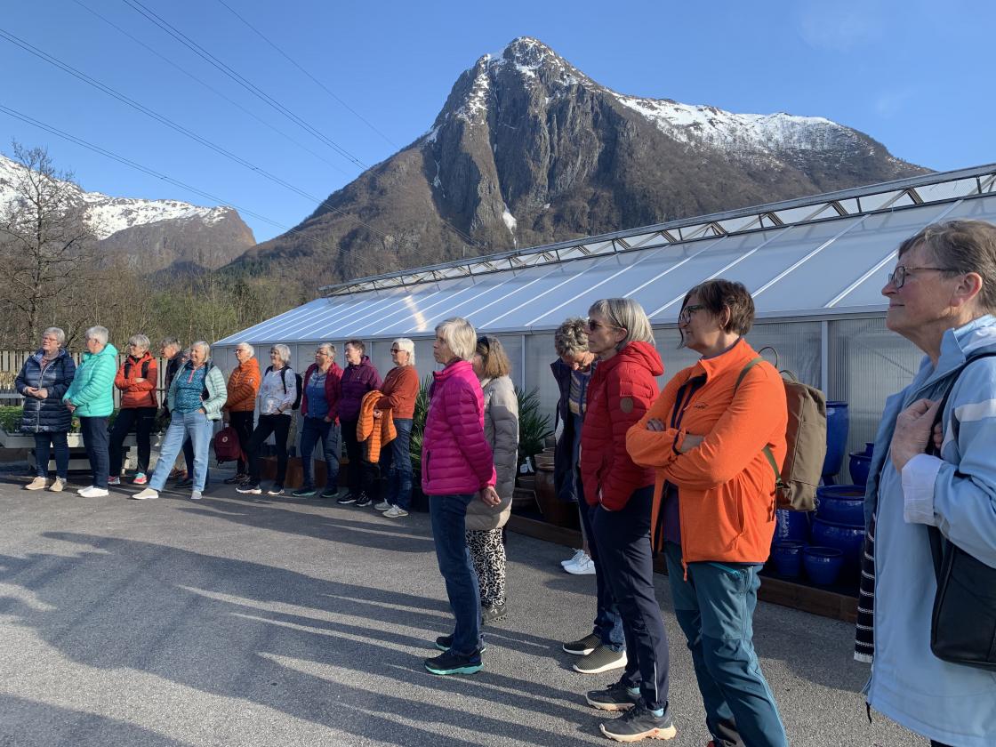 Rundt 50 damer møtte opp i Fredheim Gartneri i kveld. Her fekk vi omvisning av eigar og dagleg leiar Terje Hus. Besteforeldra hans starta drifta av hagesenteret og det fyrste drivhuset stod klart i 1947.
