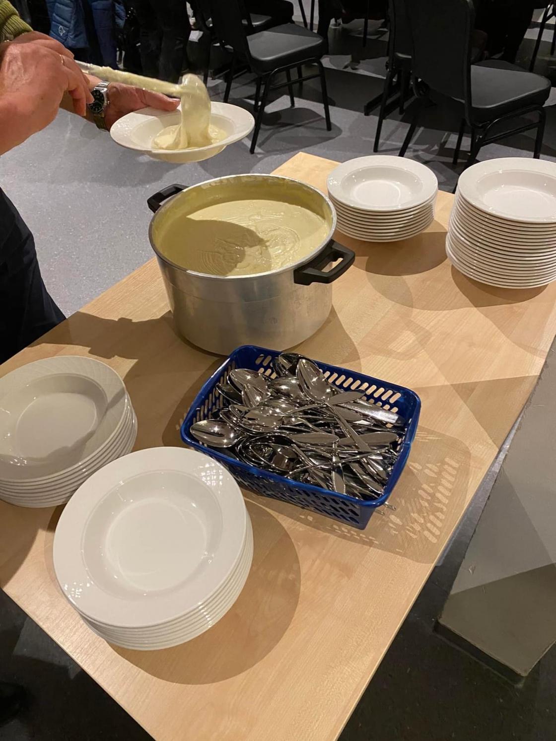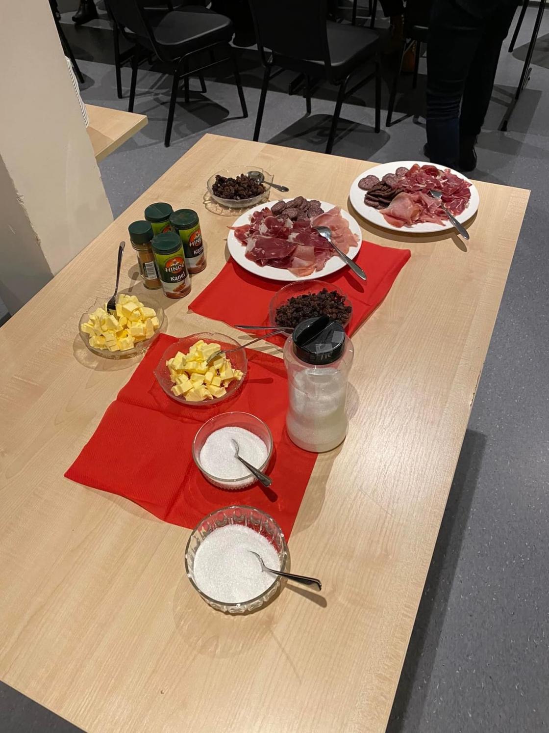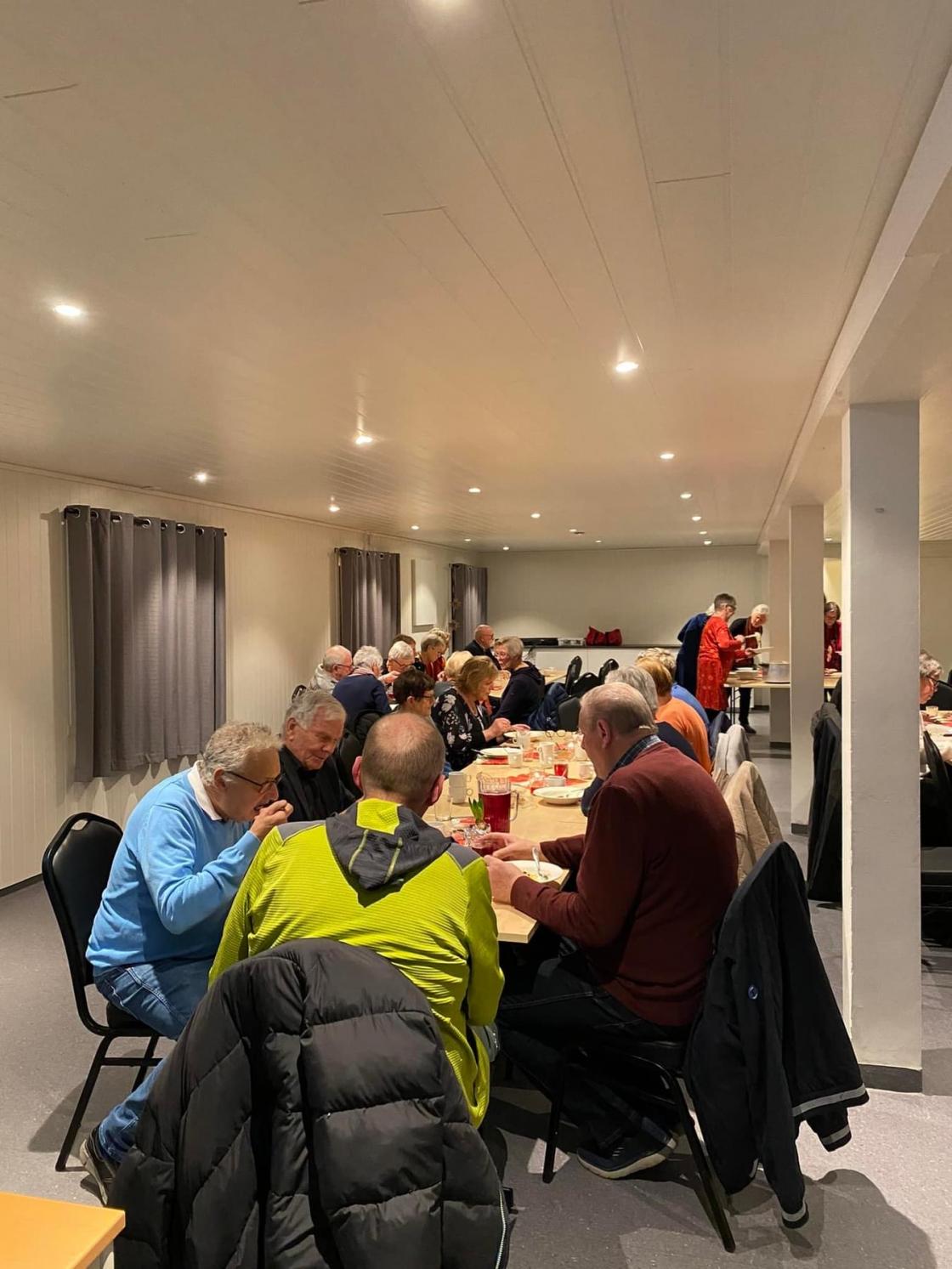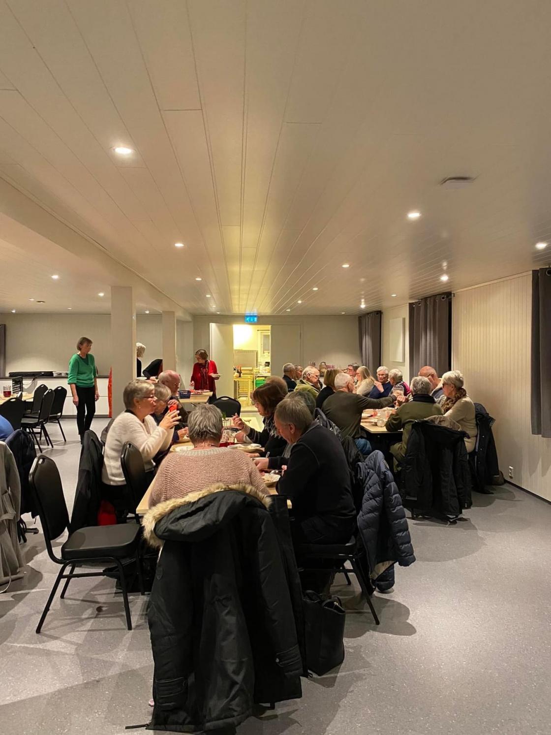Styret diska óg opp med jommagraut og spekemat etter visesongen, før kvelden vart avslutta med ei lita utlodning.