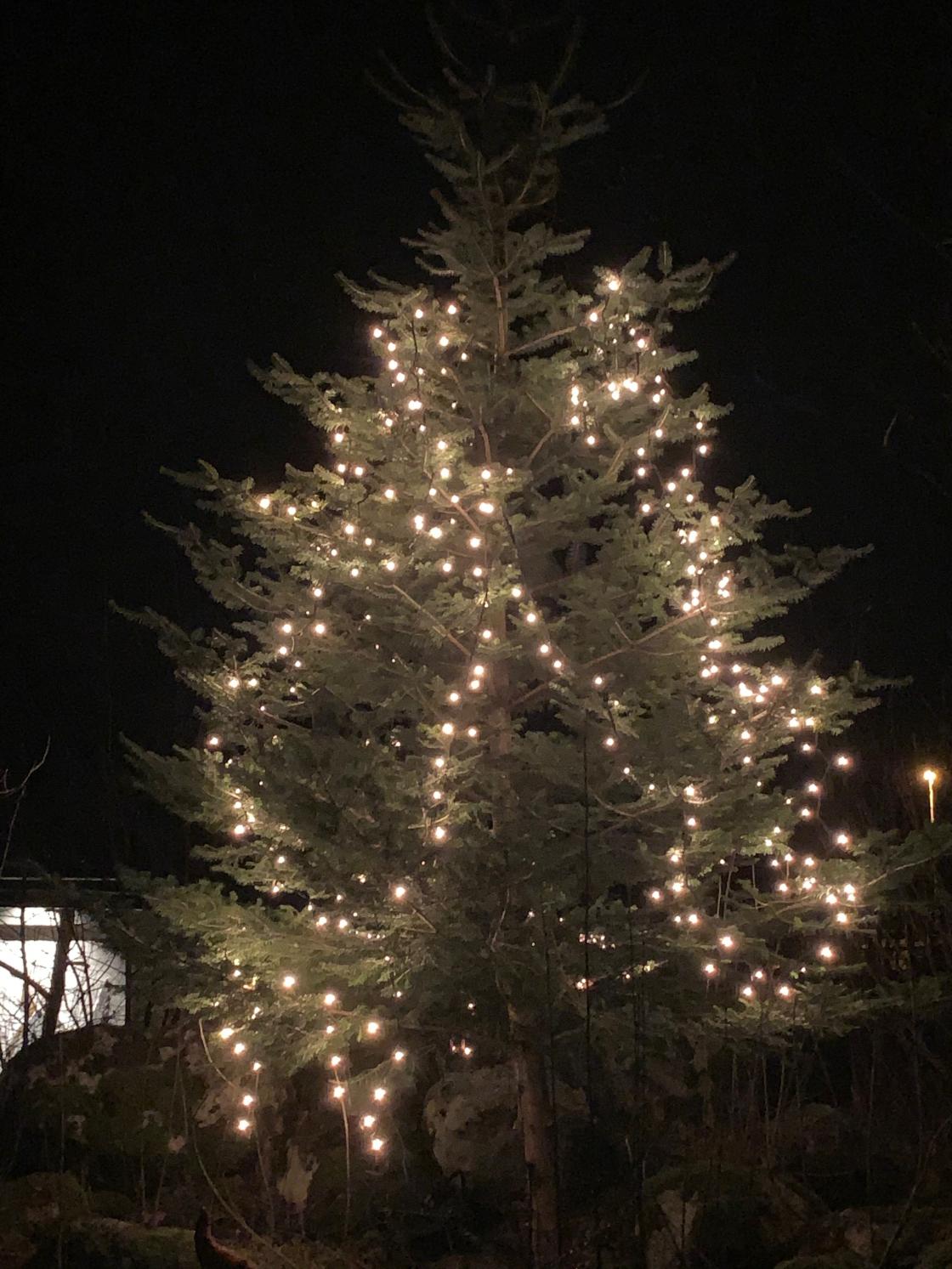 Steinparken var flott pynta med ljos og juledekorasjoner.
