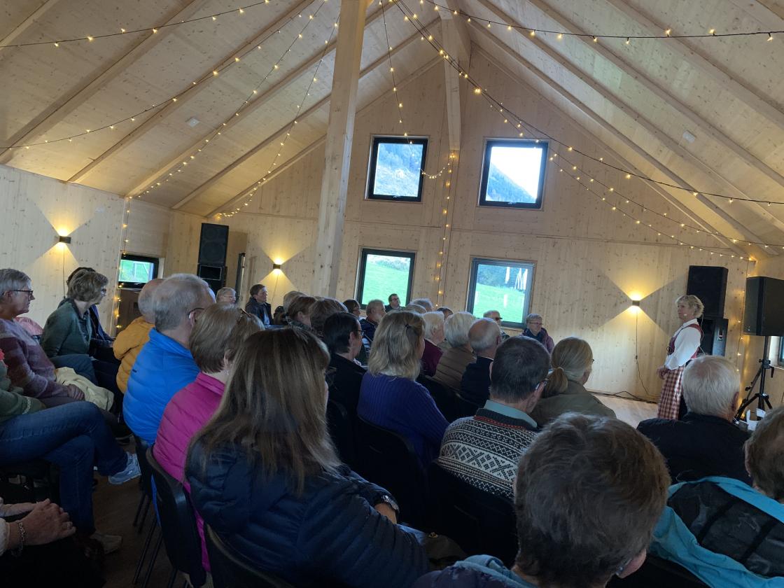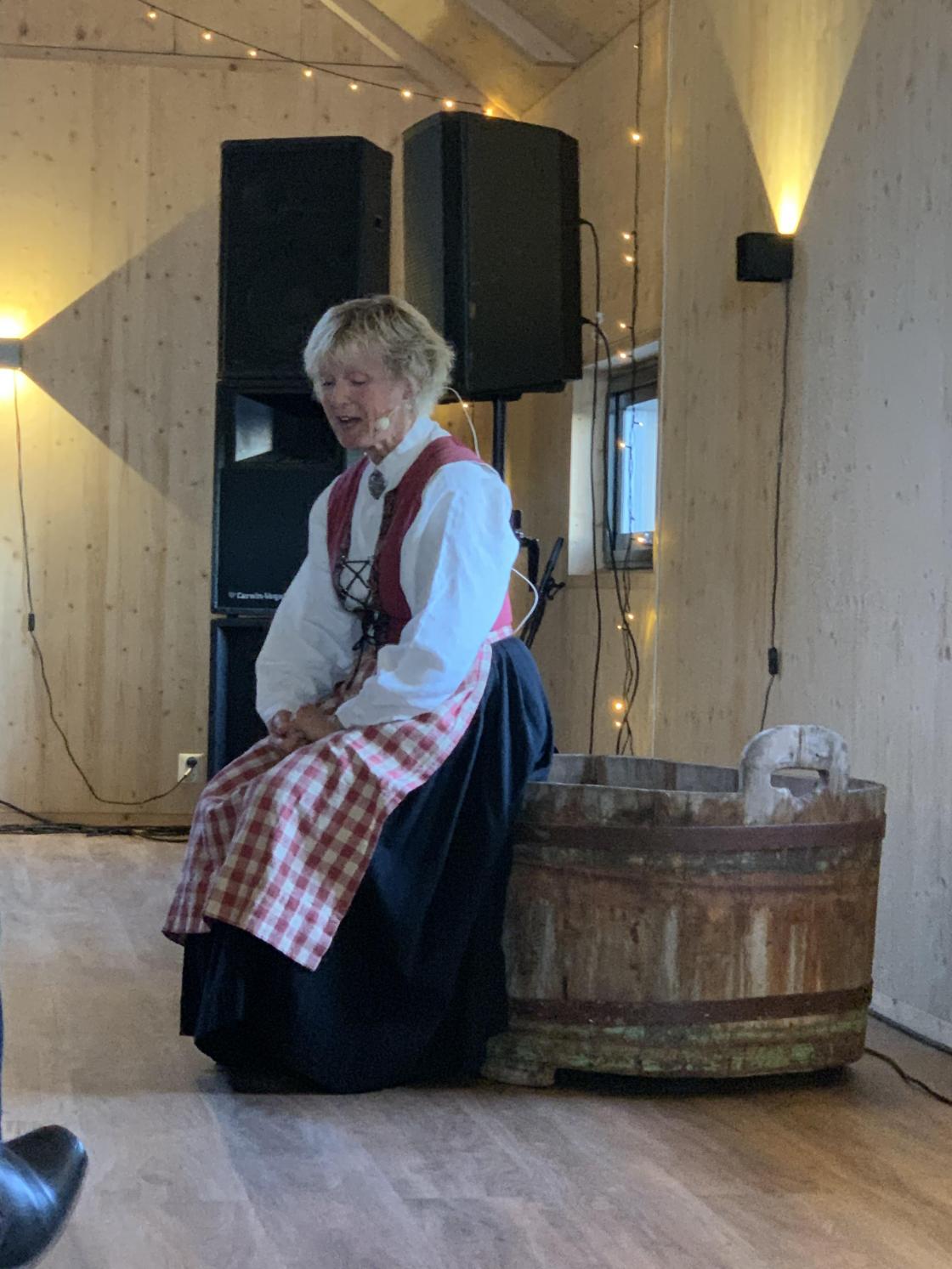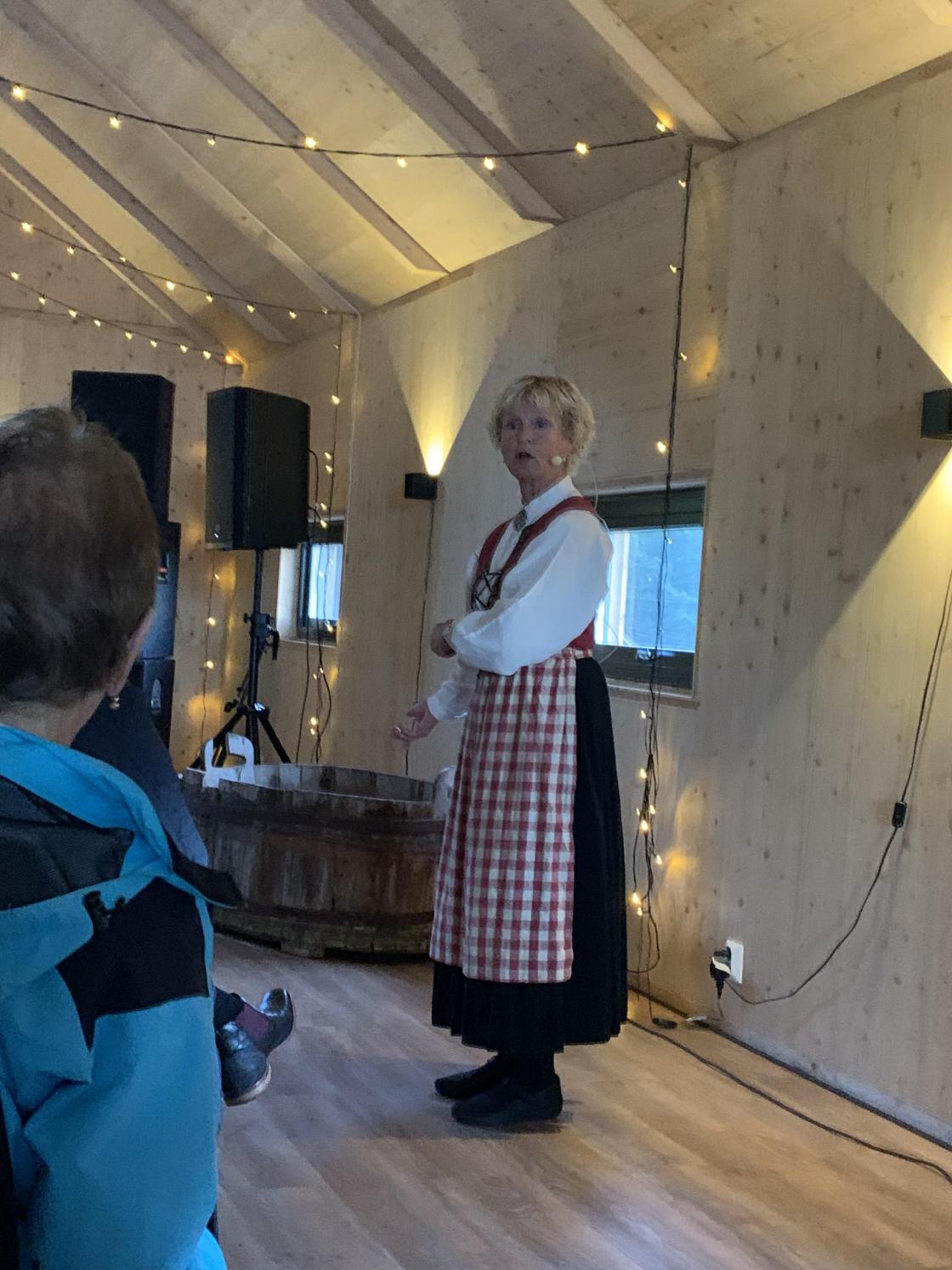 om ein motytelse ynskte Sunnhordland museum å gje oss ein forteljarkveld. Torsdag 29.09 arrangerte vi difor forteljarkveld på Tveito. Linda Øen og Johanna Tvedten fra Sunnhordland museum besøkte oss. Linda hadde omvisning i Haua huset, Etterpå samlast vi i Eivind si løe, no selskapslokale. Her fortalte Johanna historien sin om Per i Dosi fra romanane «Vanheppa» og «Brite-Per». Alt framført utan manus, imponerande!! Etterpå var det drøs og servering av kaffi, kaker og frukt.