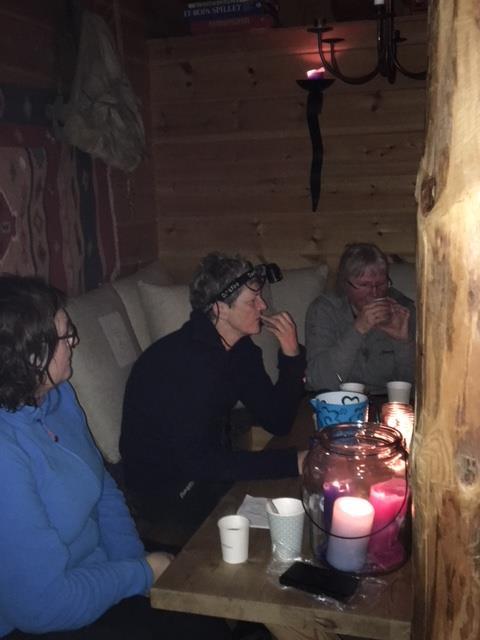 10 personar fann vegen til Aterstad denne kvelden. Vi såg diverre ikkje månen, men vel framme på hytta koste vi oss med kaffi og suppe.