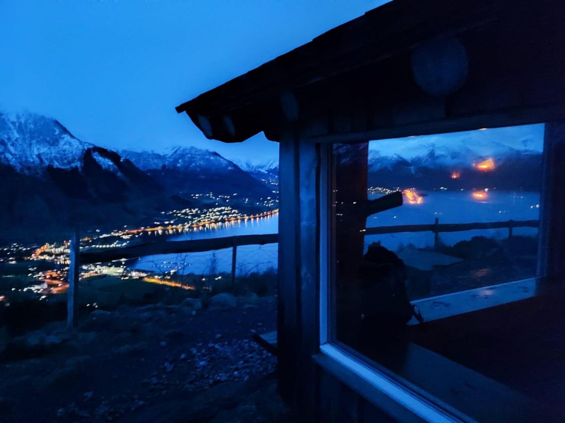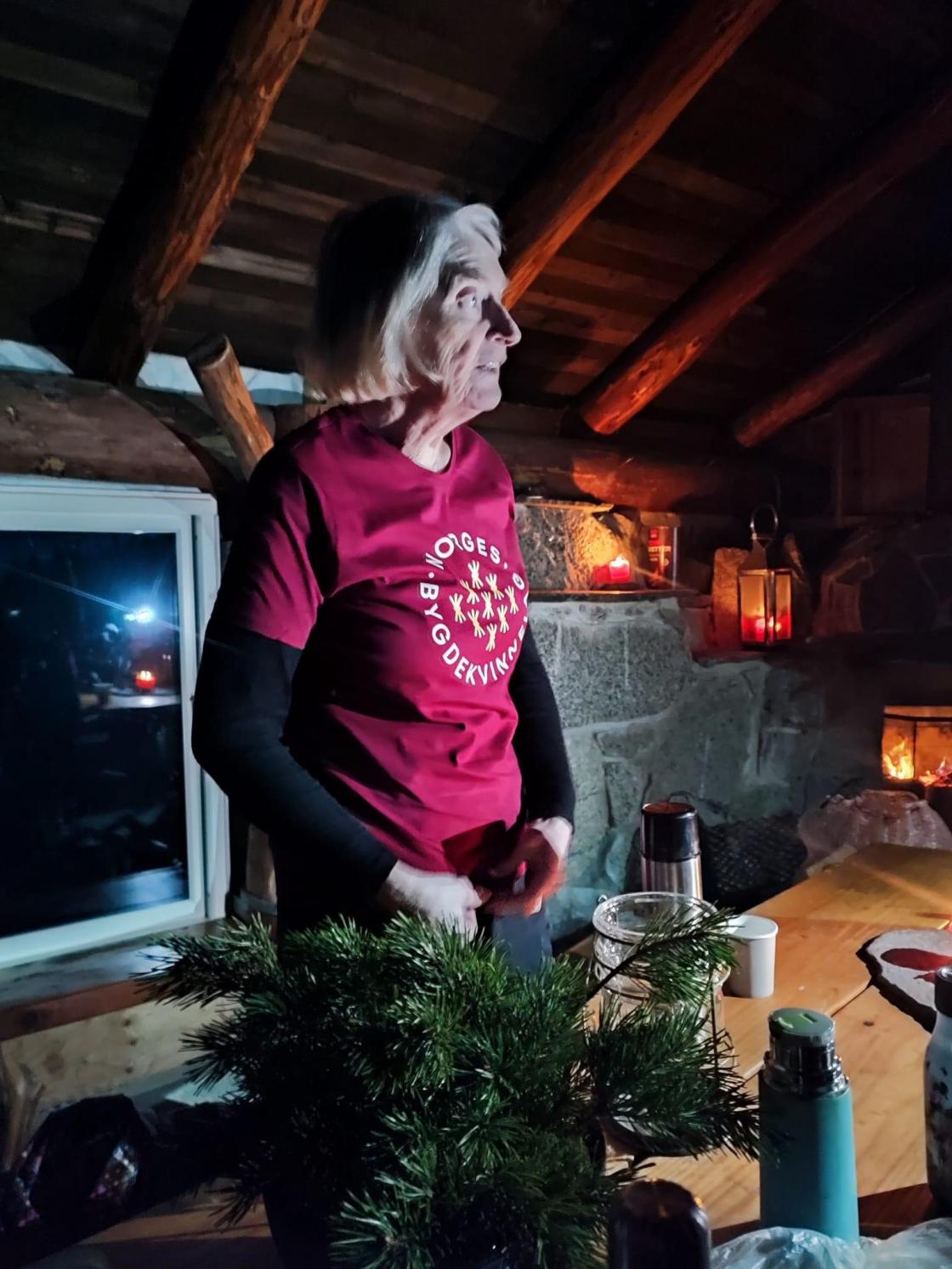 Fjorten bygdekvinner og ein mann tok turen til den fine dagsturhytta på Sjethaug der det var fyrt opp i peisen og tente lys gjorde det koseleg. Ei fin stund rundt langborda med kaffi og godt preik, før månemannen følgde oss på turen ned igjen.