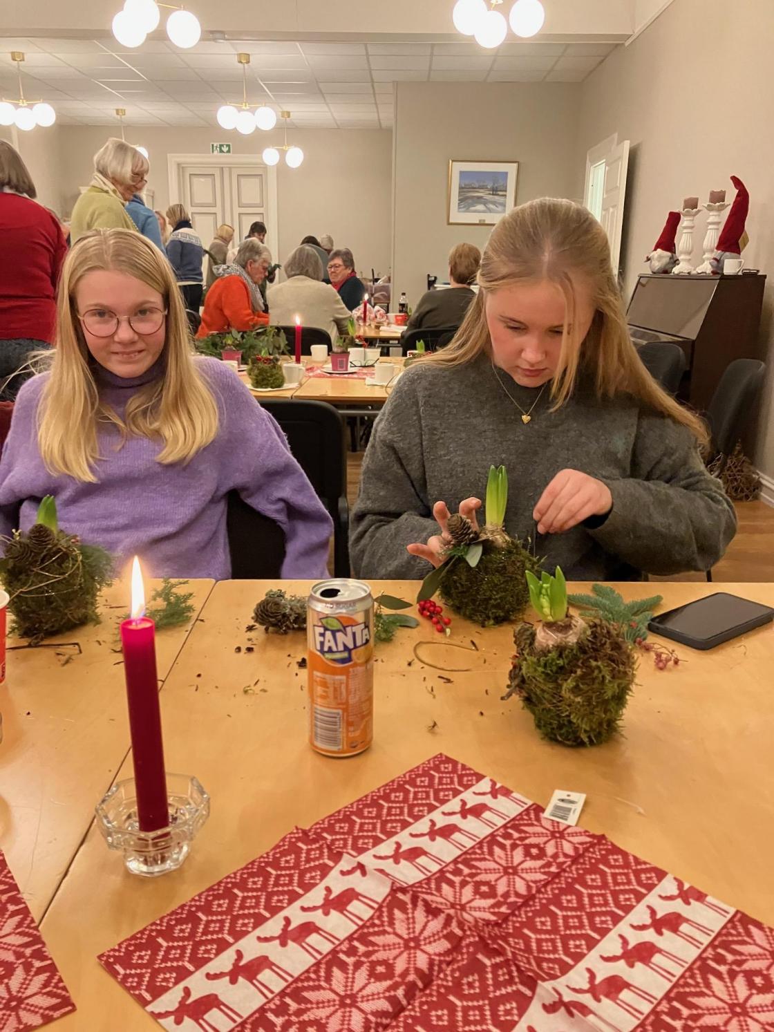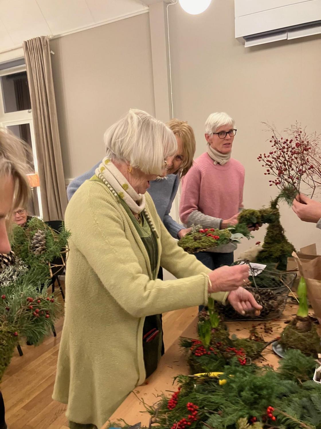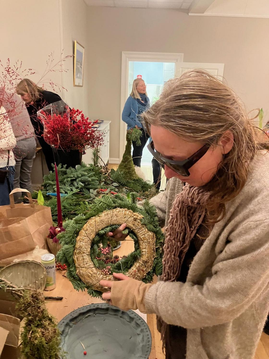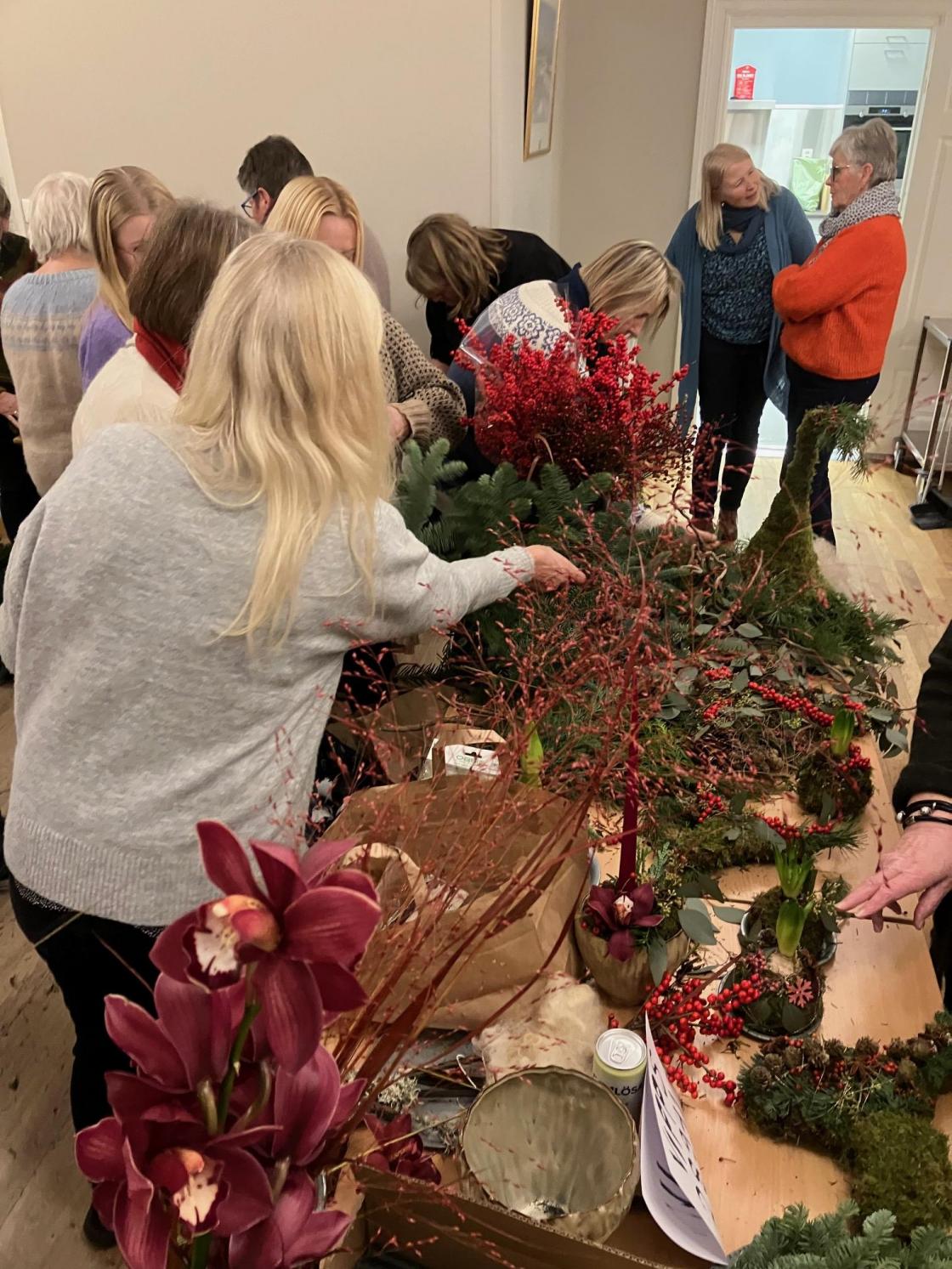 Det ble en hyggelig kveld på Bøndenes hus 27. november da leder i Onsøy Bygdekvinnelag June Vallestrand kunne ønske 45 damer (jenter) velkommen til et møte med inspirasjon og kreativitet. Kveldens foredragsholder Anita Solbrekke Hein ble dessverre forhindret fra å komme, men i hennes fravær stilte Carina Petterson ( Ilebys blomster) og det var en dame som kunne sakene sine. Etter en demonstrasjon på hvordan vi kunne skape magi av naturmaterialer var det klart for møtedeltakerne å prøve seg, og resultatene lot ikke vente på seg. Underveis i keativiteten ble det også servert marsipankake, julekake og hvetekake med brunost og gulost( her skal det sies at de måtte ha på ønsket pålegg selv). Som sagt ble det en fantastisk kveld og når det hele blir avsluttet med loddtrekning på utallige gevinster så blir det helt «knæll»