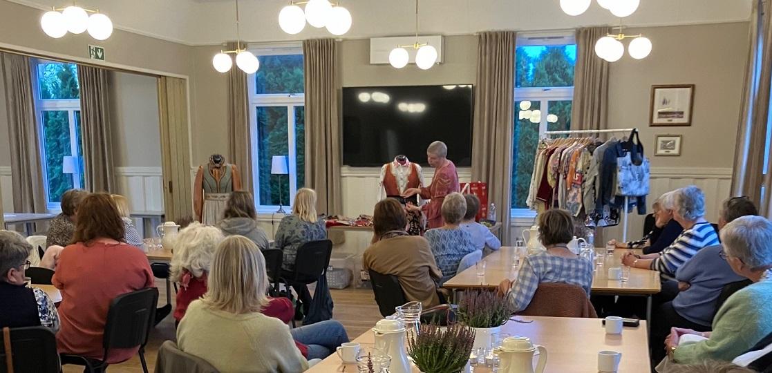 Det ble en fantastisk hyggelig kveld mandag 26.august da leder June Vallestrand kunne ønske 36 forventningsfulle damer velkommen til Kolberg. Kveldens foredragsholder Gro Nordby fra Vestby er virkelig en kreativ tusenkunstner og for et fyrverkeri av en dame. Her var det ikke snakk om bruk og kast og hun viste fram et stort utvalg av redesignede produkter. Sengetøy, gardiner, duker, skjorta til kællen, gamle broderier, ja alt kan få nytt liv. Det var nok mange som boblet over av inspirasjon etter foredraget og kunne tenke seg å lære mer, så vi har et håp om et kurs med denne engasjerte damen over nyåret. Som vanlig på et møte ble det lagssaker, bevertning og utlodning med mange gevinster. Vi takker for et inspirerende og hyggelig møte.