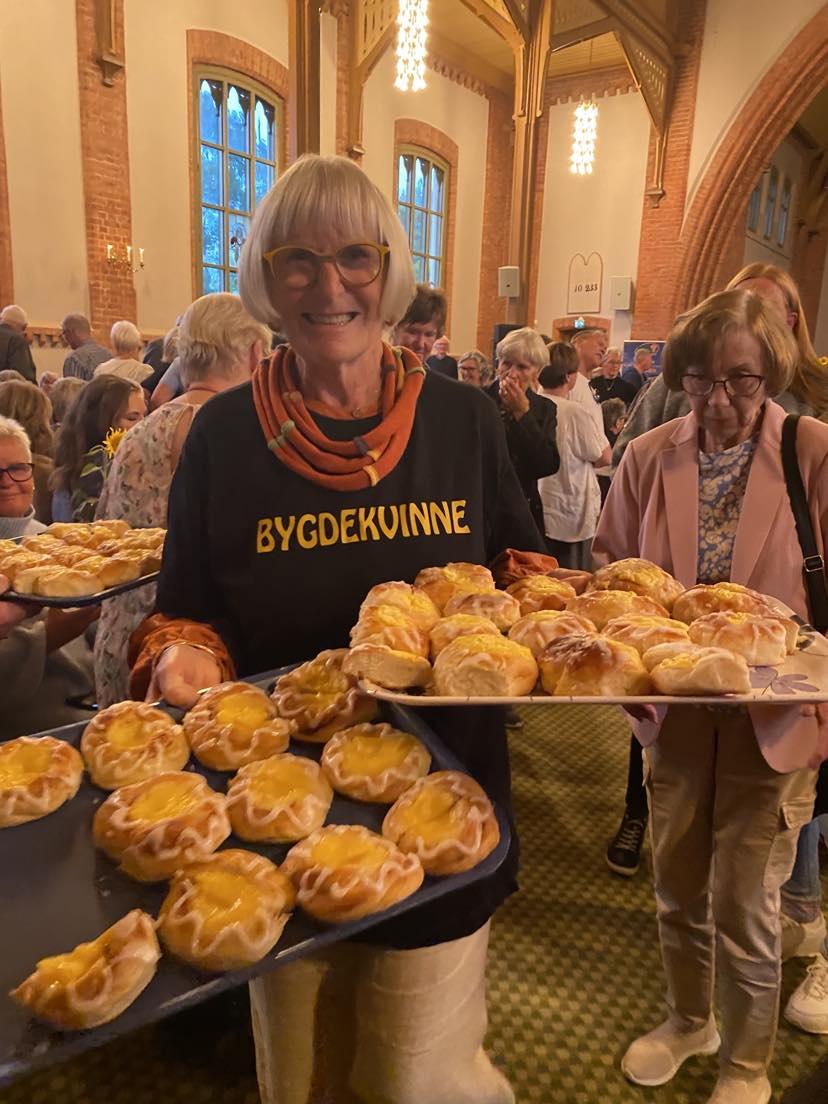 Det ble i forkant to dager med morsom og givende dugnad for mange av medlemmene. Det ble plukket solsikker og andre vekster fra naturen, bakt solboller (400 stk. + glutenfritt), sanket inn melkespann fra halve bygda, og pynting av kirken.