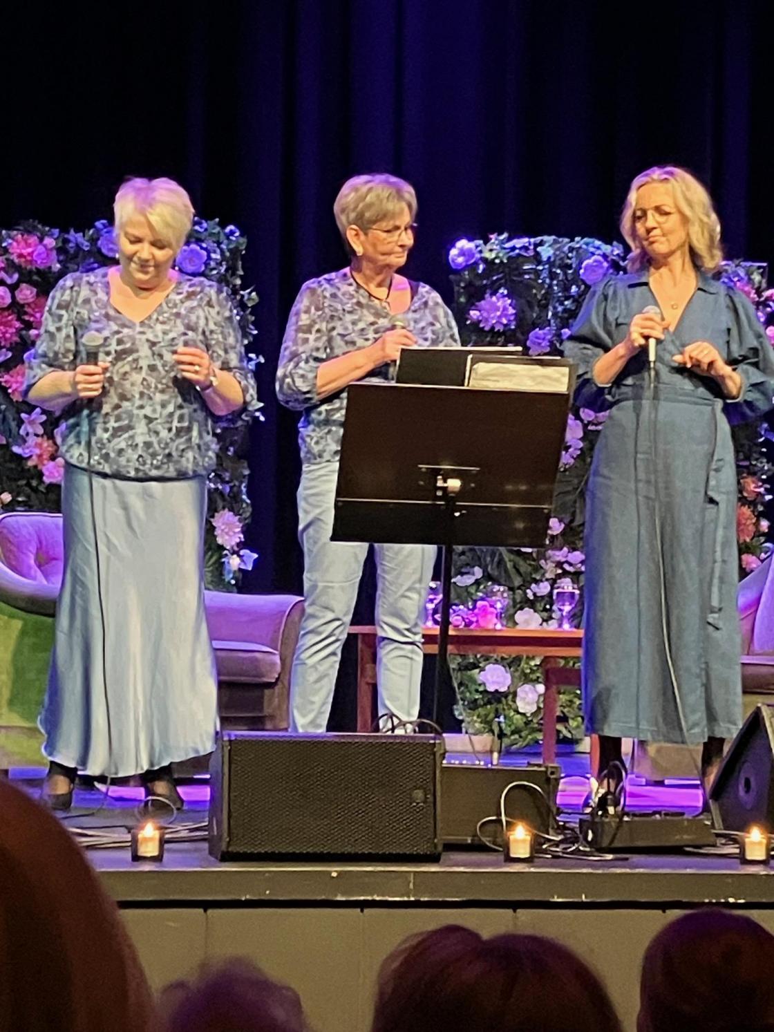Kveldens konferansierer Anne Lovise Eriksen og Nina Garder fra skoleringskomiteen i Østfold Bygdekvinnelag geleidet oss strålende gjennom kvelden og vi fikk også stifte bekjentskap med den fantastiske sangtrioen Tres som besto av tre sangglade damer fra Rokke.
