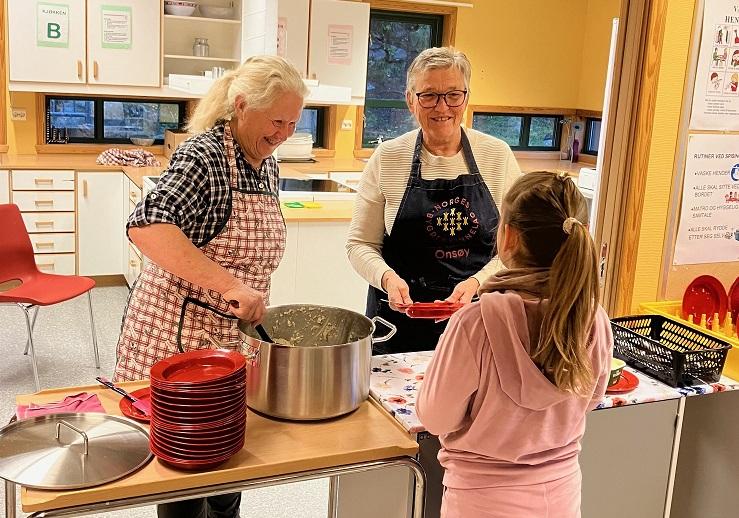 Det er ikke bare Manstad skole som fikk besøk av oss denne uken, for på onsdag startet vi opp igjen med frokostserveringen av havregrøt til elevene på Slevik Skole også.