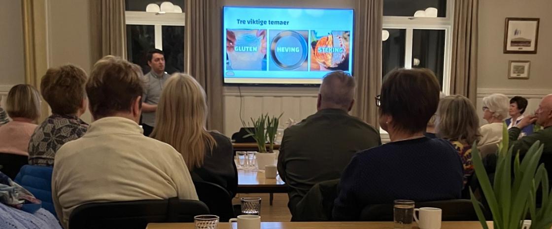 Nils Amund Rusås Ruud – Brødhue trakk fullt hus under sitt foredrag mandag 24.mars. Over 80 deltakere fant veien til Bøndenes Hus i Onsøy for å få inngående kunnskap om surdeigsbrød og gjærbakst. Vi ble vitne til en engasjert og behagelig foredragsholder som delte sine vitenskapelige erfaringer når det gjaldt gjærbakst, og det skortet ikke på triks og knep for å få til et vellykket bakverk. Etter foredraget ble det servert kveldsmat med ferskt surdeigsbrød ( bakt av Nils) og hans berømte kanelknuter til kaffen, og det smakte helt fortreffelig. Kvelden ble selvfølgelig avsluttet med loddtrekning og mange gevinster ble delt ut til fornøyde vinnere.