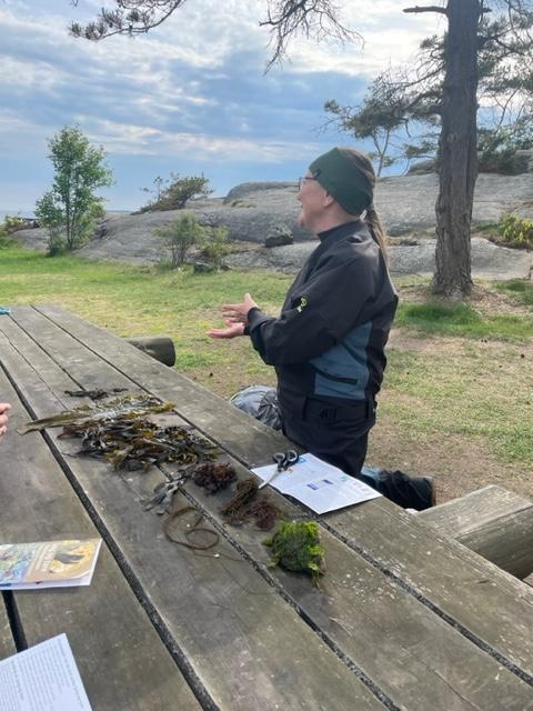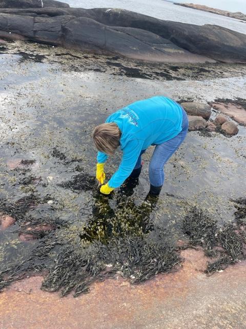 Etter møte på Kolberg med fokus på tang og tare med Bjørn Viken ønsket flere av oss et tangsafarikurs og det fant sted mandag 22.mai og denne gang var det fru Viken (Anne Lise) som var instruktør. Hun startet med litt teori for de 6 fremmøtte og deretter bar det ut i vannet. Denne kvelden var det lavvann i Flåtaviken og godt var det. Else Marie hadde skaffet vedsekker (uten ved) som var helt ypperlig for sankingen. Det ble en meget lærerik kveld og nå var det bare å få tangen i hus. Ønsket man ikke å tilberede tangen med en gang kunne man enten fryse den ned eller henge den opp til tørk. Det skal også sies at vi fikk besøk av husbond Bjørn.