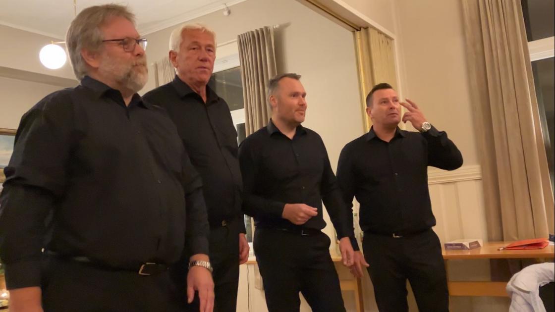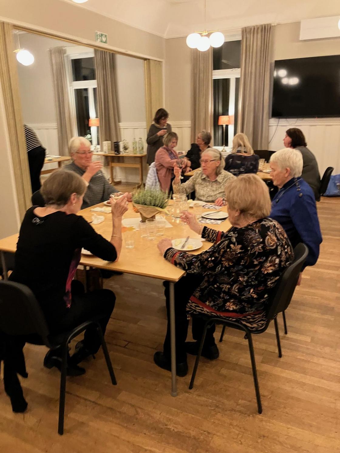 Mandag 25.september kunne leder June Vallestrand ønske 33 blide damer velkommen til et møte med mye hygge og kos.Hun startet med å åpne en gave laget fikk av Onsøy menighetsråd som takk for pynting av kirken og solbollebakst til kulturkvelden i Onsøy kirke. Innholdet viste seg å være to konfektesker, så det passet jo bra til kveldens kaffeservering. Elin Solerød var meget involvert i pyntingen av kirken, så June overrakte henne en påskjønnelse som takk for innsatsen. Laget ligger jo ikke akkuratt på latsiden så det ble tatt opp: grøtservering Slevik skole, strikking Manstad skole og basaren vi skal ha 10.desember, og i tillegg kunne June nevne at ØBK ønsket å sende to personer fra to lokallag (4 personer) til inspirasjonsseminaret i Stavanger 10- 12.november. Laget vårt og laget fra Aremark ble trukket ut og fra oss reiser Hilde Magnussen og Karine M.Nymark. Leder av husstyret Inger Marie Forsetlund kunne så informere om at Bøndenes hus har mye utleie, men for å kunne drifte huset trengs det penger, så tradisjon tro vil det også i år arrangeres førjulsmiddag. Dette vil skje søndag 3.desember og de vil nå gå tilbake til at medlemmene steker ribbe hjemme (det samme med medisterkaker) og de som ønsker å bidra med dette skal få det levert på døren. Neste post på programmet var nå å innta godsaker fra ostebordet med både rødt og hvitt i glasset for de som ønsket det, og derved summet det ganske jevnt i lokalet. Summinga stanset brått da vi fikk besøk av «Glatte Kjakær», og spørsmålet var da: hvem er dette? Jo, det er en acapellagruppe bestående av 4 staute kjekke karer med flotte stemmer : Hans Olav Nymark (lerka fra Ørmen), Tommy Svendsen fra Gressvik, Paul Langgård fra Slevik (han som bærer bagasjen), og Øivind Frøslev fra Fredrikstad. Vi ble vitne til en variert, morsom og fin konsert, og damene koset seg glugg, og som sant skal sies er det artig å høre slik imponerende stemmebruk. Etter konserten var det klart for quiz og det ble servert kaffe, is og konfekt, og en stor takk til kveldens vertinner May Lisbeth Ek og Grete Bossum. Quizen ble en lagkonkurranse og det var June som ledet det hele, og konkurranseinstinktet slo til hos mange, men det laget som vant bestod av Rigmor Martinsen, Bjørg Enghaugen og Britt Møllerhagen. Kvelden ble avsluttet med trekning av loddene og gevinstene bestod av poteter, sellerirøtter, blomster og mye mer.