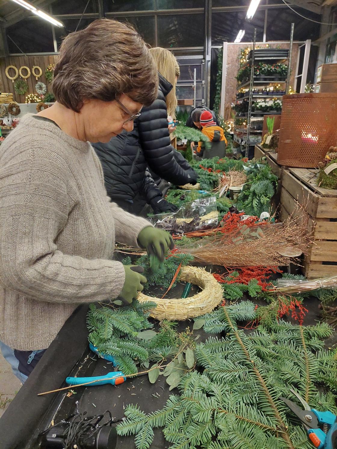 10 store og ein liten deltok på adventskranskurs på Hageland.