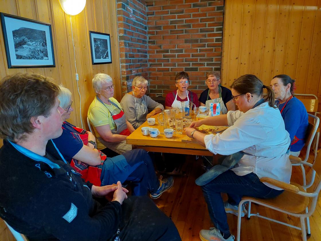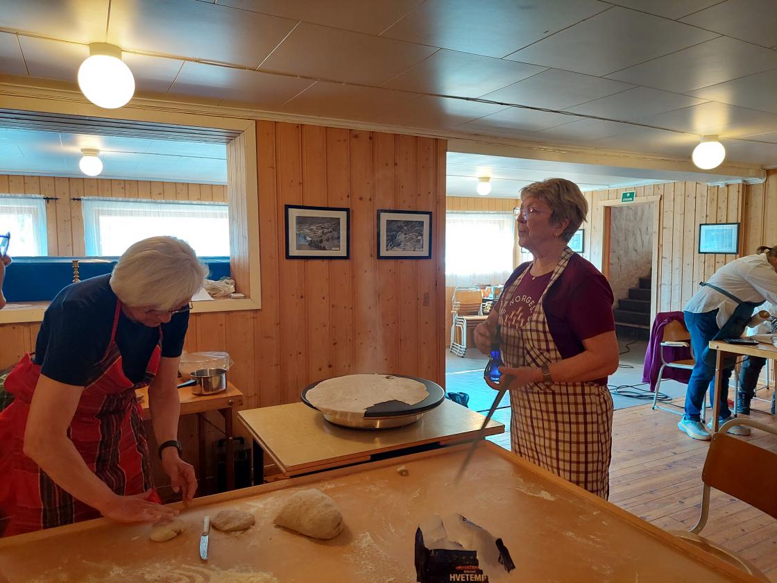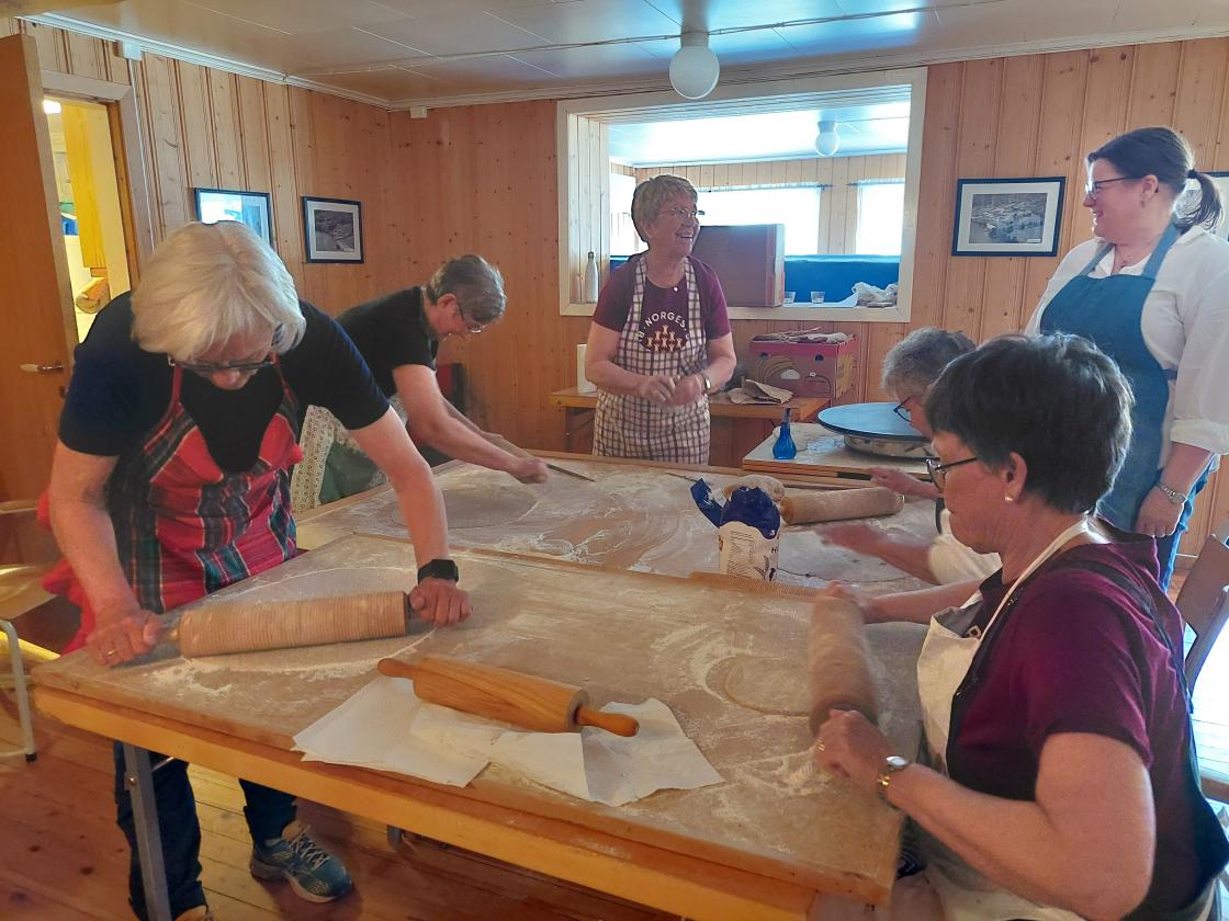 Dagen starta med at Tanya viste oss korleis me laga knåa til potetlefsene. Deltakarane vart sett i sving med å pressa potetene i potetpressa. Så vart det blanda inn smelta smør, mjølk, sukker, salt og til slutt passe mykje mjøl til ei god knåa.