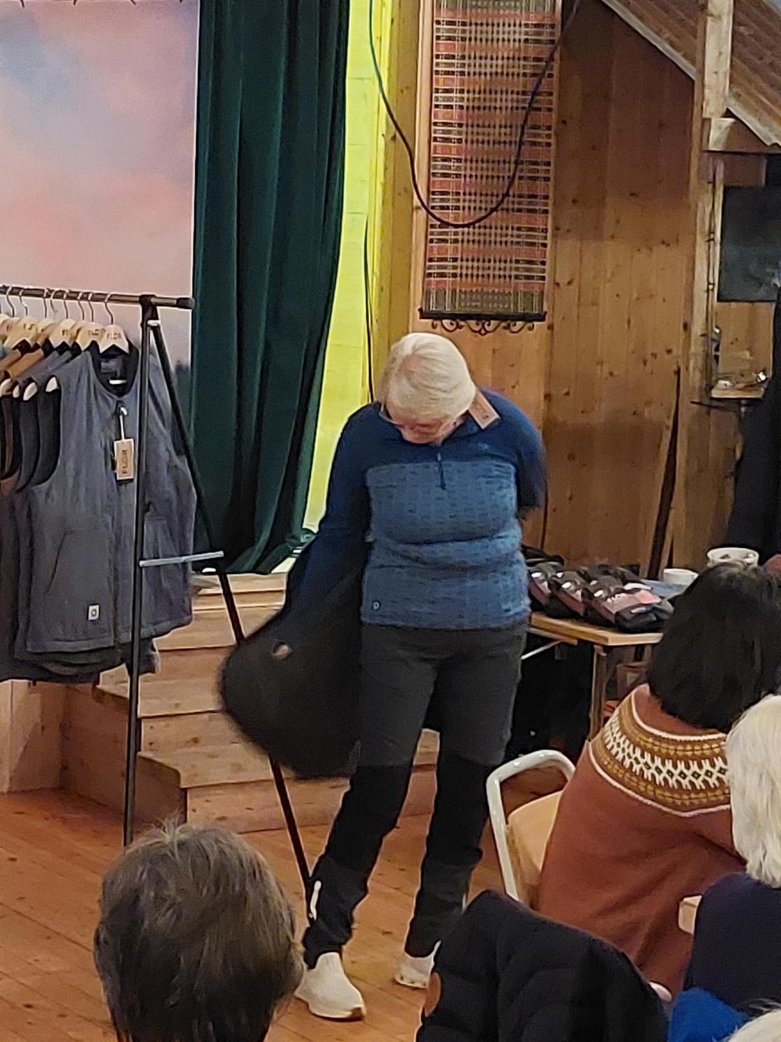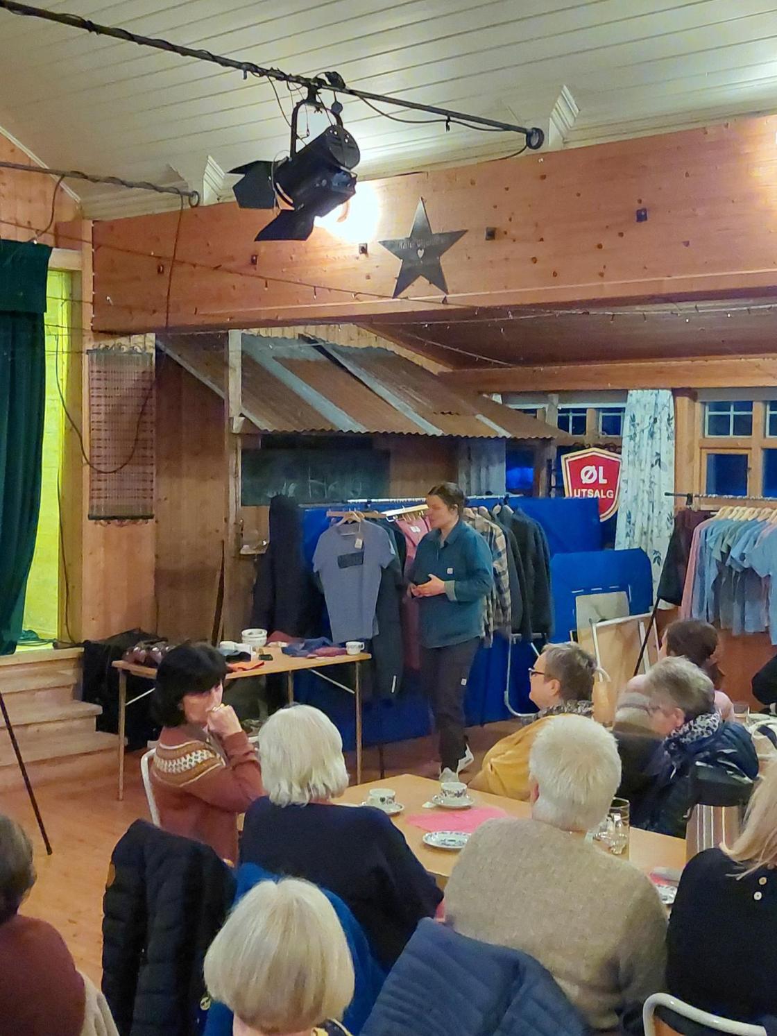 4 damer frå bygdekvinnelaget stilte som mannekengar og viste fram ein del nye og andre godt innarbeida modellar.