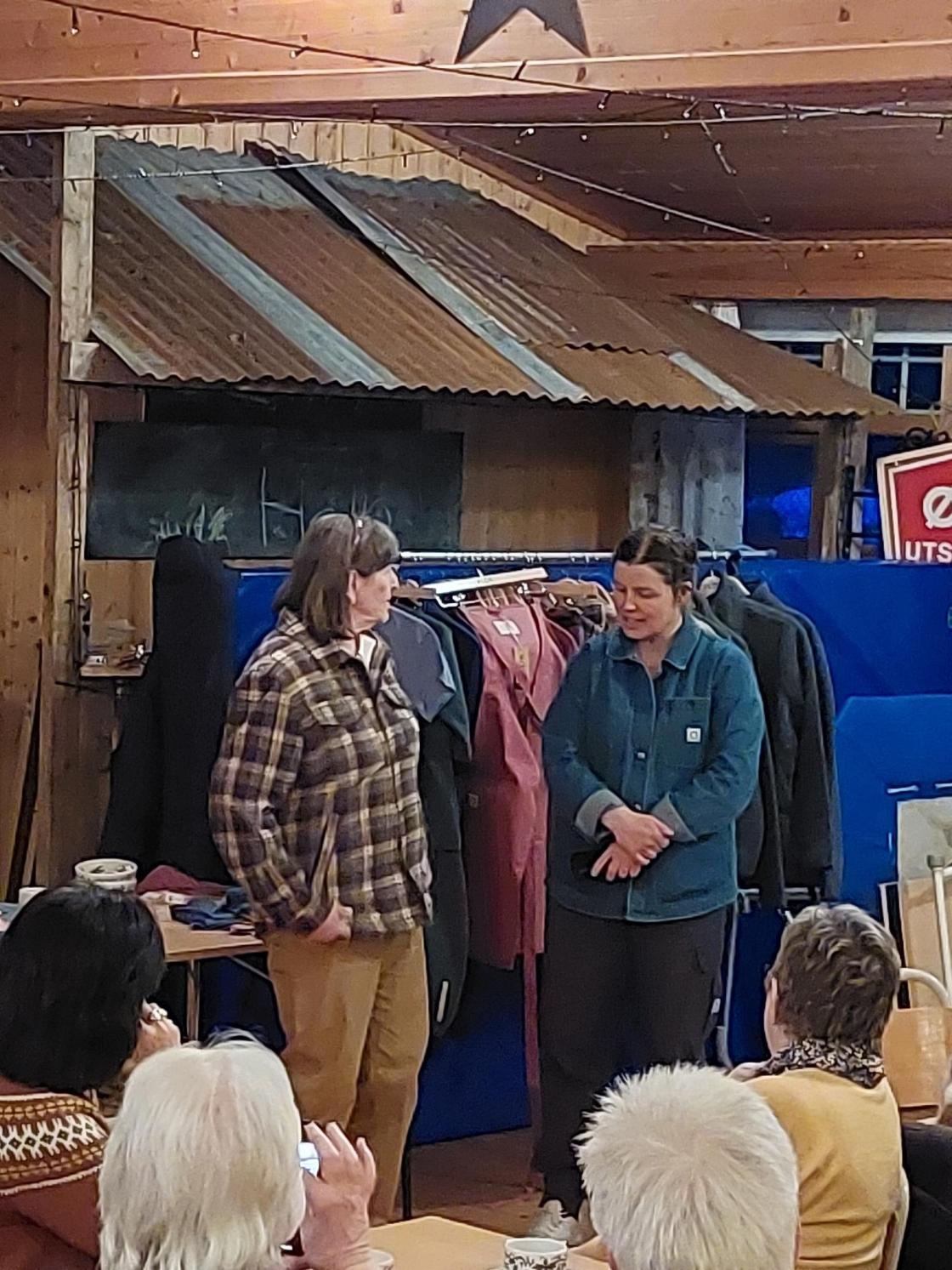 Kristin og Mari frå FLOR hadde rigga opp utstilling av kleda sine.