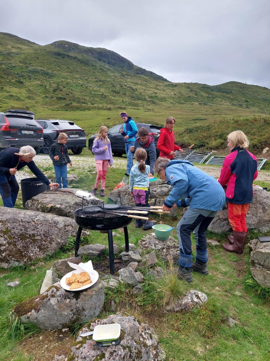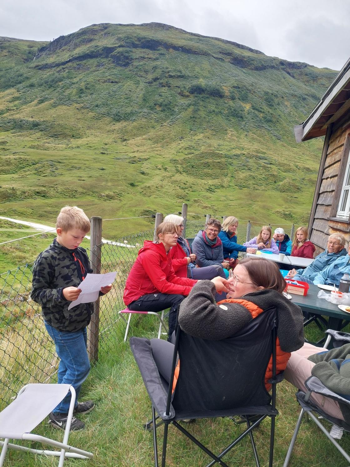 25 små og store samlast til stølsdag hjå Astrid og Alfred Bidne laurdag 16. august.