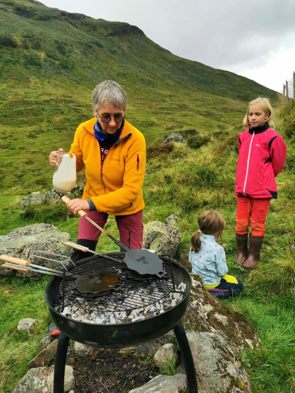 Me steikte lappar og vafler, kokte kaffi og grilla pølser på bålpanna.