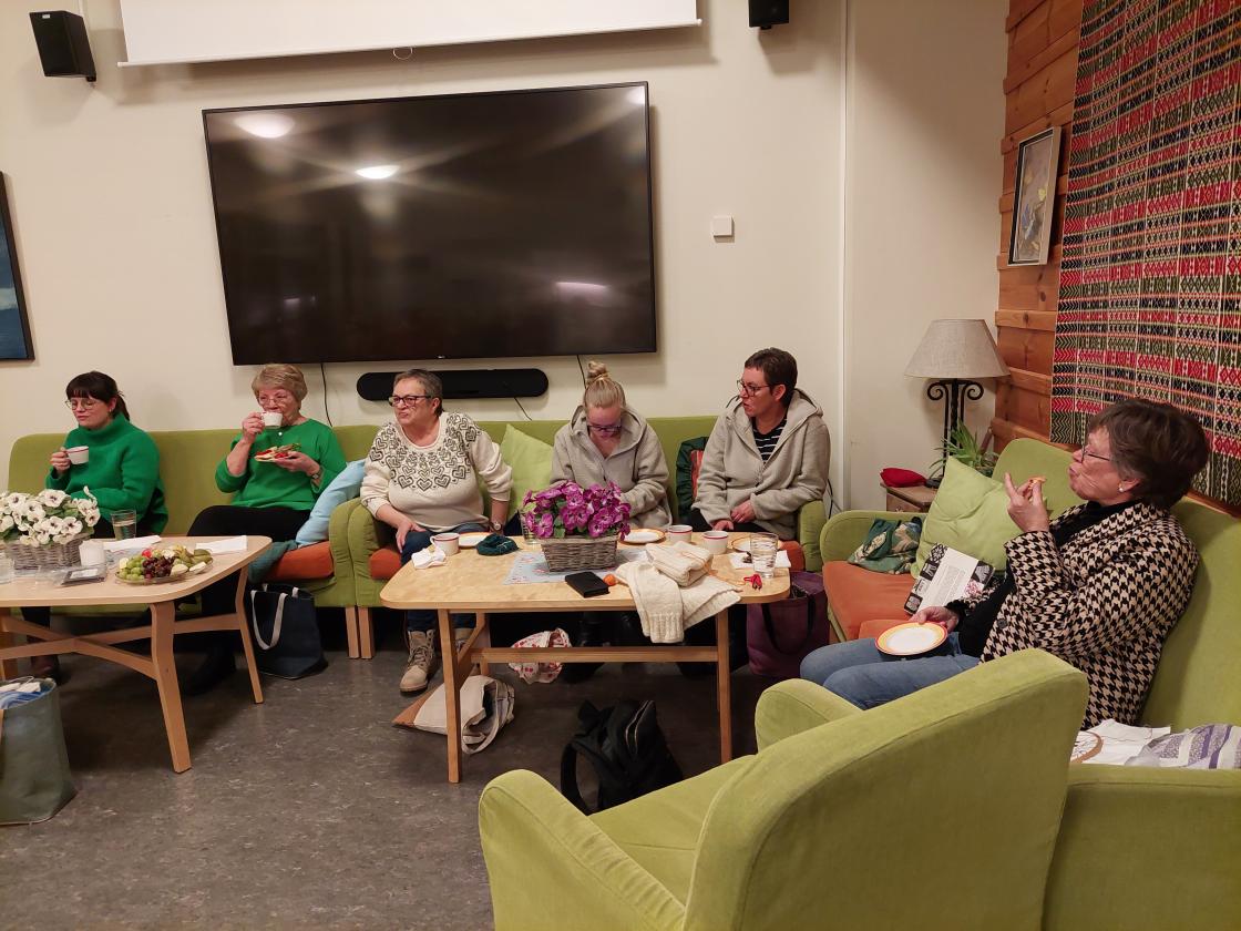 Kari og Helene frå Husfliden på Voss kom på besøk på strikkekafeen vår 26.februar ![]()