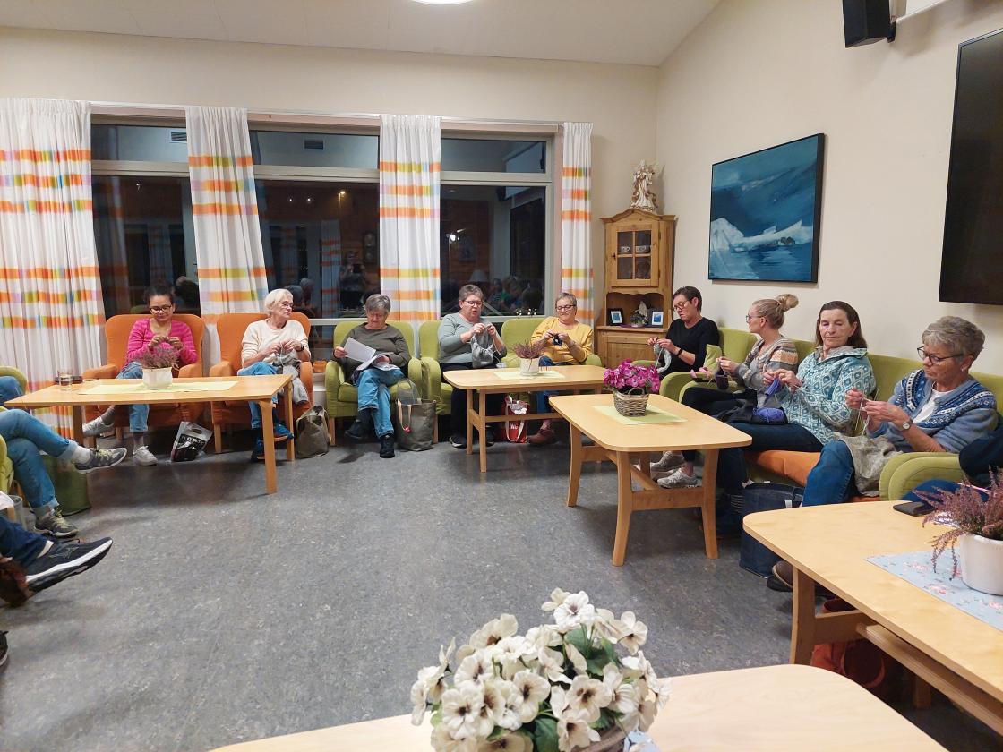 Stopping og bøting av strikkeplagg var tema på strikkekafeen 4. november.