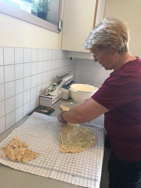 Dette er ei triveleg stund for bebuarane på omsorgstunet. Dei set stor pris på besøk. Då vert det tid for eit måltid saman, gode samtalar og song.