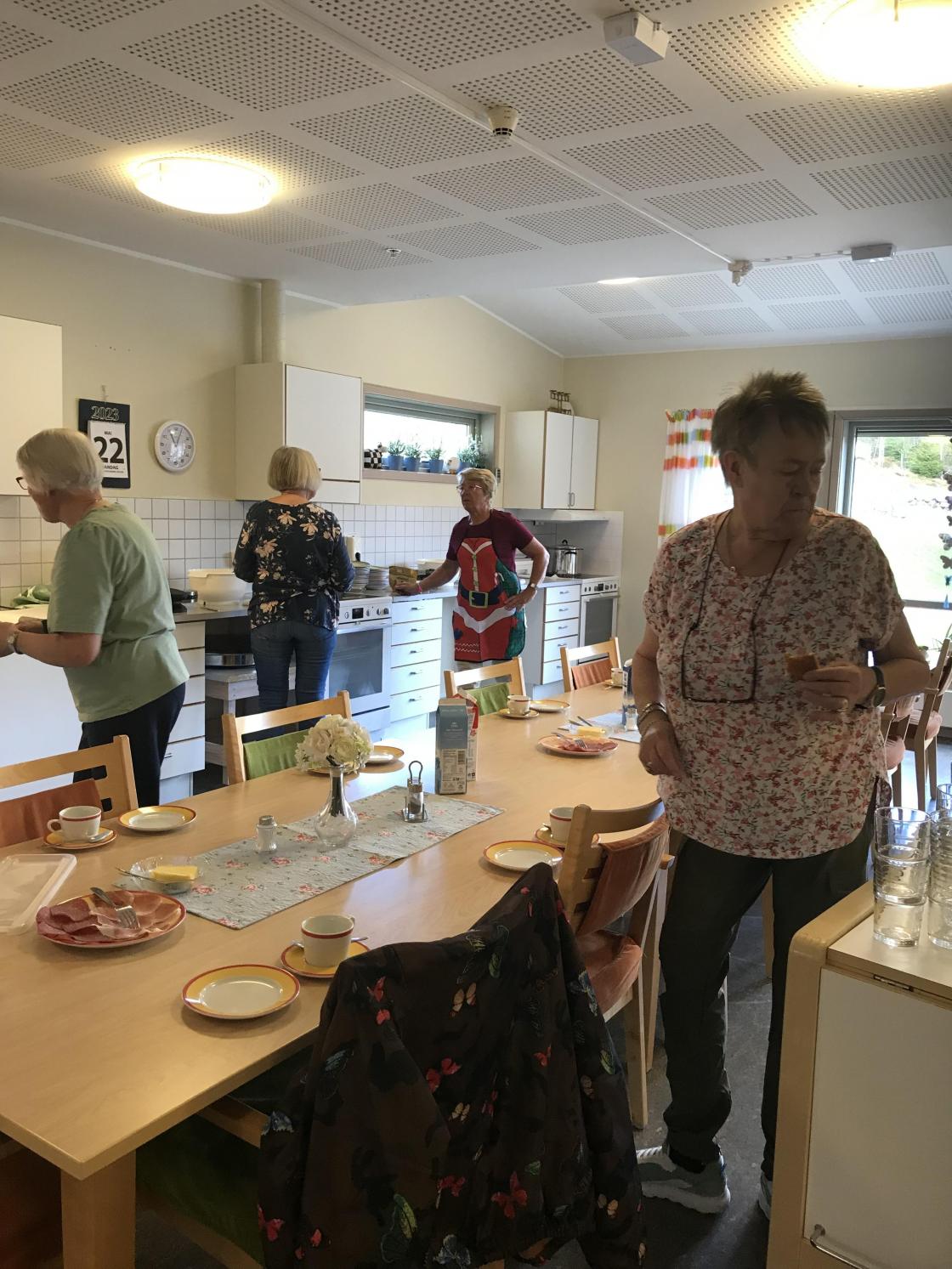 Det vart ei triveleg stund for bebuarane på omsorgstunet og for dei driftige damen som stod for matlaginga.