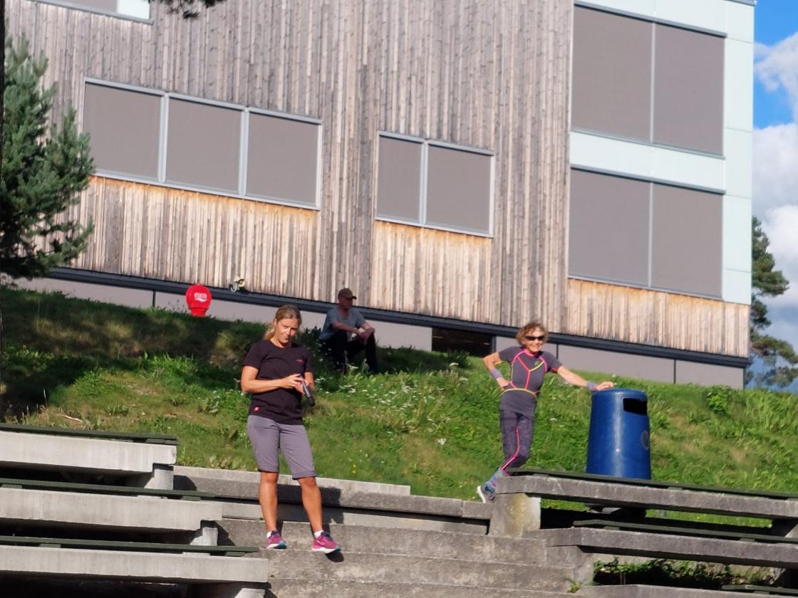 Sigfrid Naasen er klar for å leia oppvarminga før start 😅 Ho er nett lika spretten, energisk og entusiastisk som underteikna hugsar ho som gymlærar på Voss Gymnas for 40 år sidan