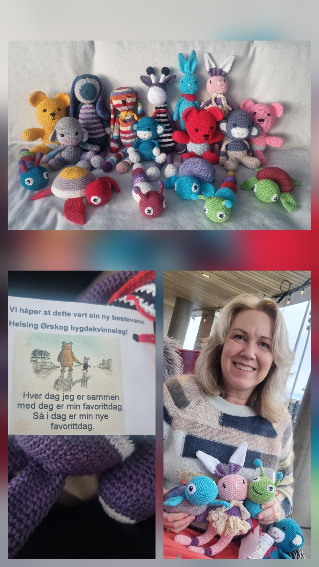 No i Januar har vi i Bygdekvinnelaget ekstra fokus på gjenbruk av restar. På årets første medlemsmøte fekk vi servert nydeleg mat, laga av restar etter jula. Ei fantastisk god kjøttsuppe og rislappar til dessert, laga av dyktige bygdekvinner. Vi har fått donert ein god del restegarn i bomull, som flittige hender i strikkegruppa har produsert flotte hekla bamsar av. Bamsane har vi gitt i gåve til Krisesenter for Sunnmøre, som kan gje desse vidare til dei yngste brukarane av senteret, slik at dei kan får seg ein liten venn, i ei tid der mykje opplevast vanskeleg. Leiar ved Krisesenteret for Sunnmøre. Cecilie Teunissen, takka varmt for denne gåva.