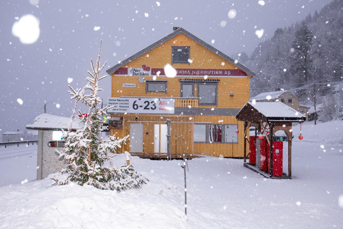 Tradisjonen tro, ble det julegrantenning med korpsmusikk og julesang i år også. Julegrana ble tent, og alle fikk komme inn i butikken og varme seg med gløgg og julegrøt.