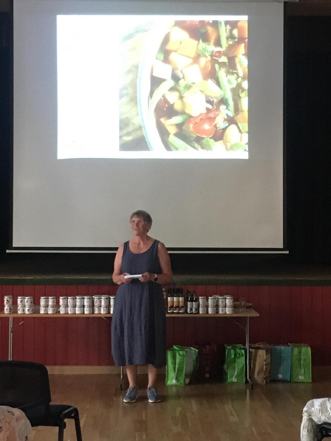 Tema for kvelden var «Spis i sesong og Bokashi (tørr kompostering). Det var også salg av hennes krydder mm.