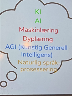 Det ble forklart mange ord, fordeler med KI og misbruk. Fordeler som ble nevnt er effektivisering, automatisering, tilpasset opplæring, forskning og forbedret helsetilbud spesielt i hjemmebaserte tjenester.
