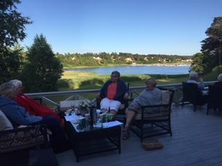 På medlemsmøte den 12.juni, stilte Gerd Louise sin terrasse til disposisjon, på denne fine sommerkvelden. I alt 23 medlemmer møtte opp. Styret ordnet med innkjøp av ost, frukt, vin og andre forfriskninger, som ble satt på bordet til alle medlemmene kom kl.17.