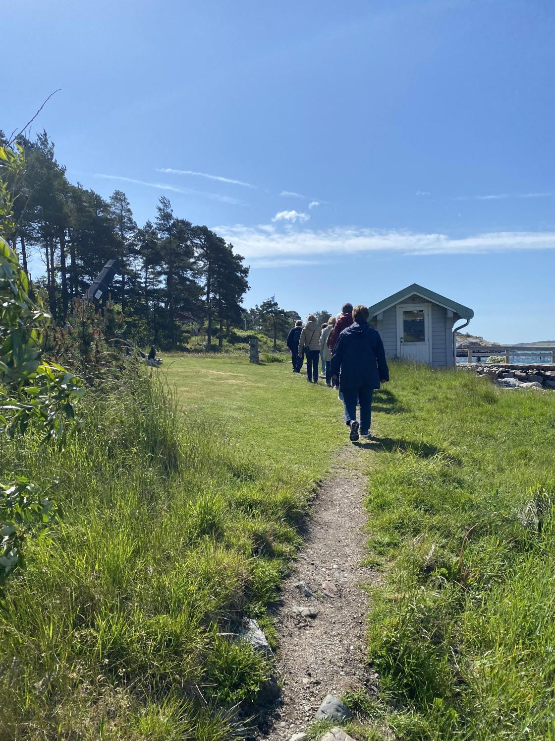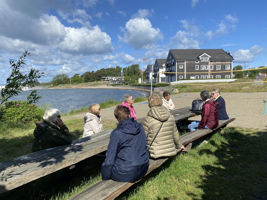 Mandag morgen kom Gerd Louise kl.10, og tok oss med på tur i området der hun er lommekjent. Hun fortalte oss historier om og fra Larkollen og det var utrolig interessant å høre henne fortelle! Deretter gikk vi kyststien til Rørvik der Gerd Louise bor og fikk servert lokal, kjølig forfriskende drikke på hennes terrasse! En fin avslutning på vår lille utflukt ! Vi gikk veien ned til hotellet igjen og sjekket ut.