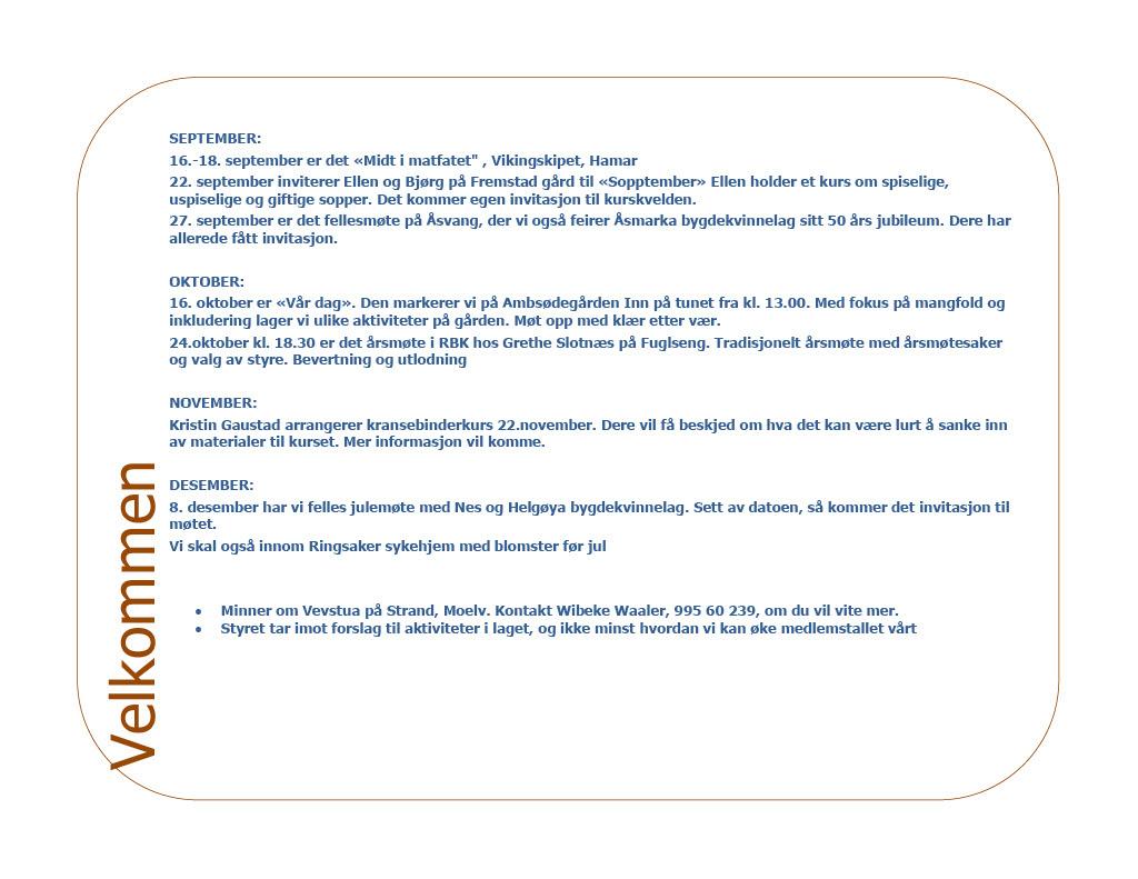 Forside Om Ringsaker Bygdekvinnelag Styret i Ringsaker bygdekvinnelag - Vevstua Referater Årsmeldinger fra år til år Previous Next Årsplan høst 2022 Her er høstens aktiviteter! Ringsaker Superbruker · 20. september, 2022 Håper du finner noe du vil delta på. Like 1598 Del på: