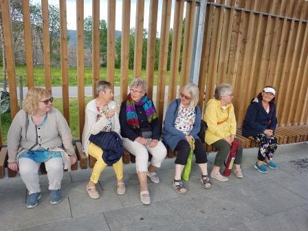 Etter at vi avsluttet toppturen og kom oss ned på landjorda igjen var det tid for og se Mjøsparken som heller ikke alle var kjent med. Det har blitt et utrolig flott sted for folk i alle aldre. Nydelig blomster, masse lekeapparater, skatebane og badestrand. Noen regndråper i lufta gjorde at det var praktisk og kunne sette seg under tak – det var det også rom for. Været tillot ikke et langt besøk, men jeg tror de fleste tenkte at hit vil vi reise en gang til. Da er det bare og vente på finvær og serveringstilbudet og når alle anleggsmaskinene blir borte fra området etter hvert som park og nye E6 blir ferdig – da blir det et utrolig flott sted for oss alle i kommunen.