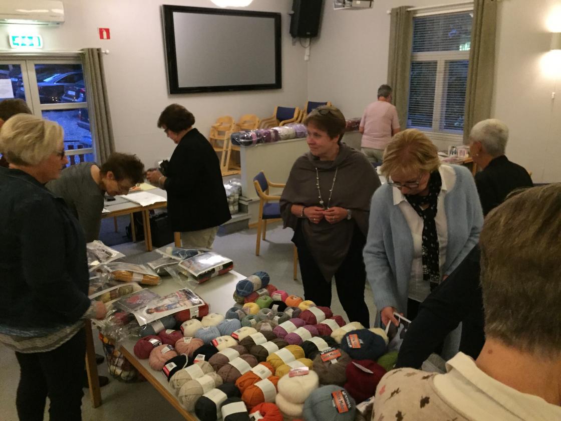 På medlemsmøtet 18.09, på Nylende Grendehus, hadde vi besøk av Flamingo garn fra Gressvik. De hadde med et utrolig stort utvalg av garn, garnpakker til gensere, kofter, luer, sokker, pledd m.m. De hadde også med noen ferdige produkter, og et av våre medlemmer, Lisbeth Holme, stilte som modell. Mange av medlemmene lot seg inspirere, og handlet med seg garn hjem til nye prosjekter.