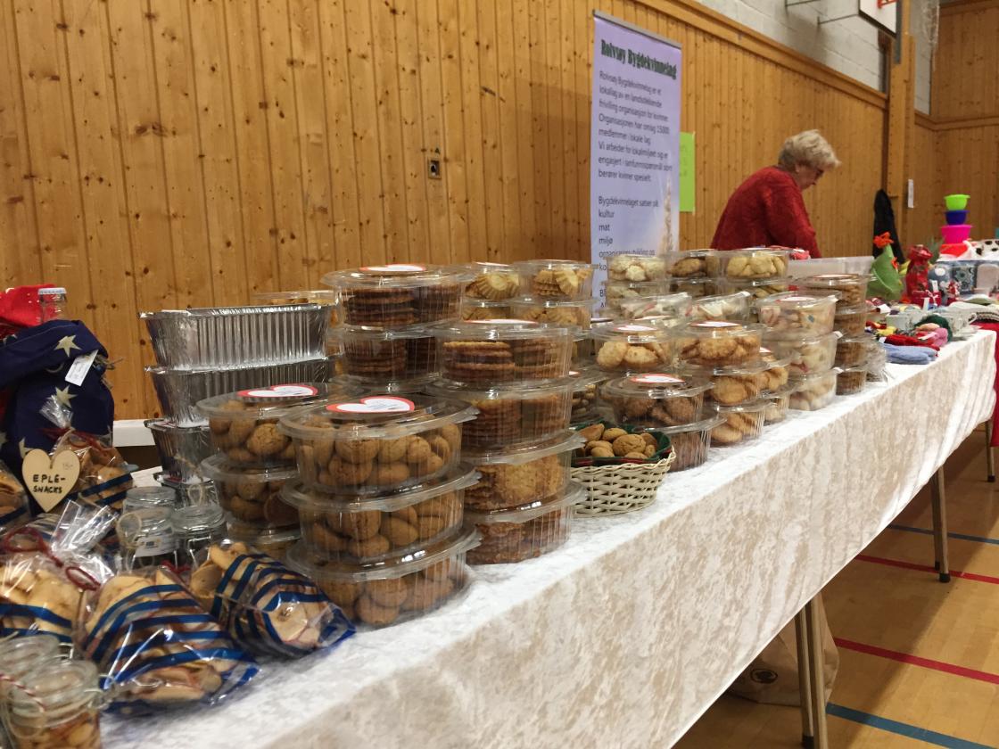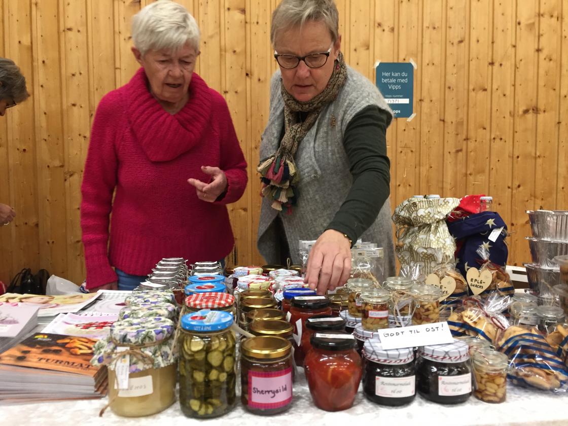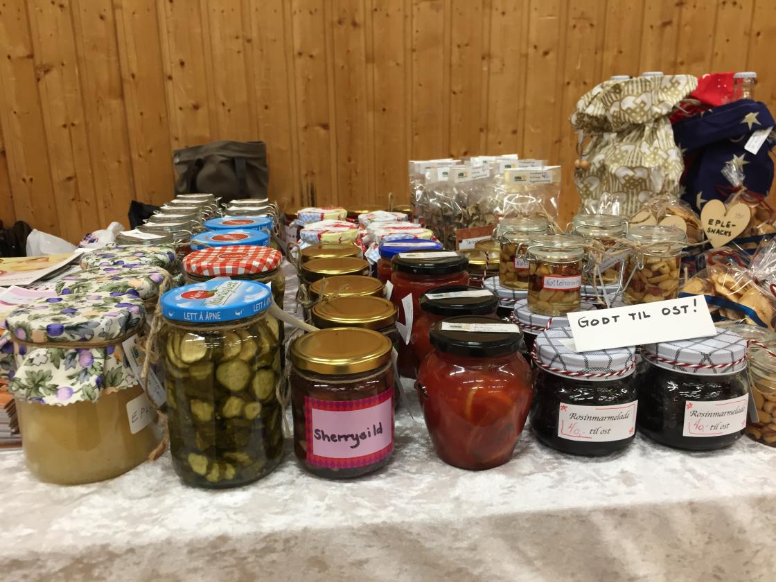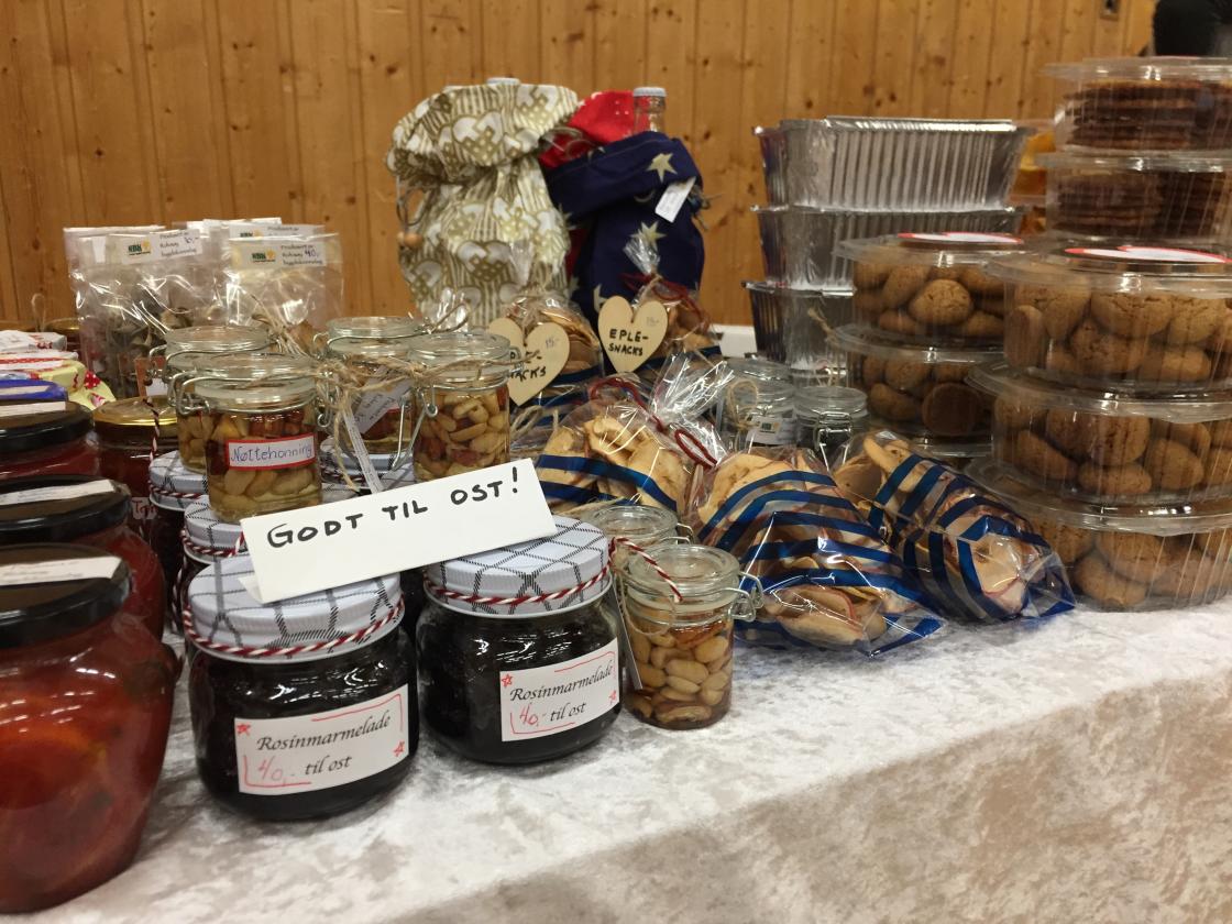 Medlemmene våre bidro med mange flotte hjemmelagde produkter. Gelé, sure agurker, syltet rødløk, marmelade, nøttehonning, mange slags julekaker, tørket sopp, strikkede og heklede produkter, støpte lys og mye mer!