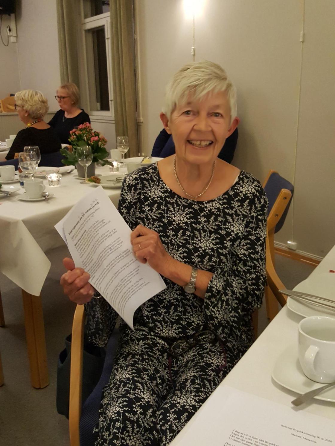 Vi sang jubileumssangen, skrevet av Liv Jorunn T.Holer. Deretter spiste vi lekre snitter, før Bjørg Løkke leste jubileumsberetningen. Den ble skrevet av Randi Nordskog i anledning 80 års jubileet, redigert av Bjørg Løkke til 90 års jubileumet. Det var interessant å høre om alle temaene Bondekvinnelaget/Bygdekvinnelaget har arbeidet med igjennom 90 år!