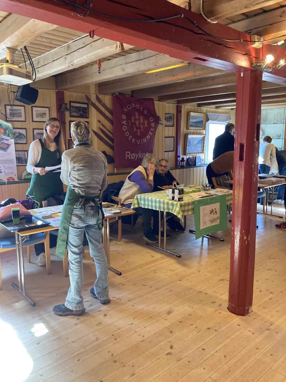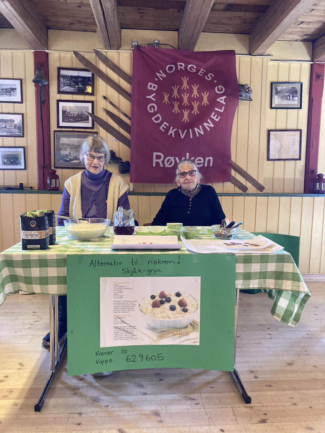 Lørdag 11. april deltok vi på et arrangement som Røyken Historielag arrangerte på Kornmagasinet. De holdt åpen hus slik at folk fikk muligheten til å se samlingene som historielaget har der. Vi serverte en smaksprøve på byggrynskrem med rød saus. Den ble godt mottatt! Byggrynskrem laget av byggryn fra Skjåk mølle er er flott alternativ til riskrem. Vi bygdekvinner er opptatt av å bruke norske råvarer, og denne kremen er en nydelig dessert.