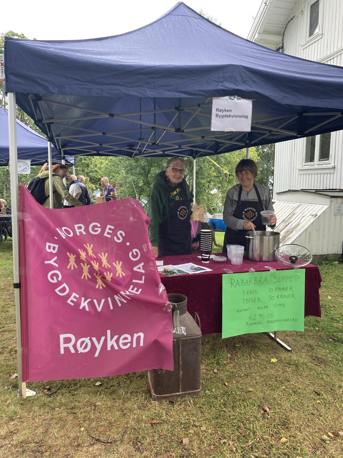 Lørdag 30. august deltok vi på historisk dag med Røyken Historielag på Hernestangen. Tradisjonen tro solgte vi hjemmelaget rabarbrasuppe med rabarbra fra Bente og Einar Ølstad. Denne gangen tilbød vi også "take away" slik at folk kunne kjøpe med hjem til dessert. Det var vellykket.