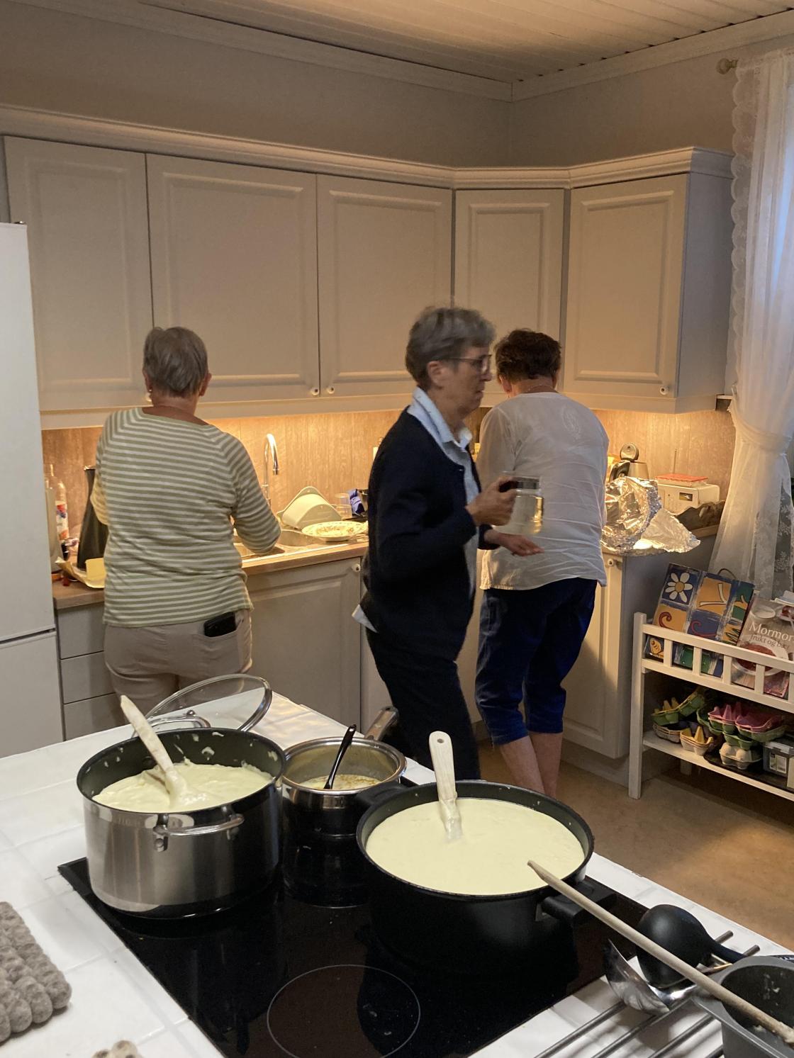Etter planteauksjonen var det klart for rømmegrøt, saft, rabarbrakaker og kaffe innendørs. Tusen takk til kaffekomitéen som alltid gjør det hyggelig for oss.