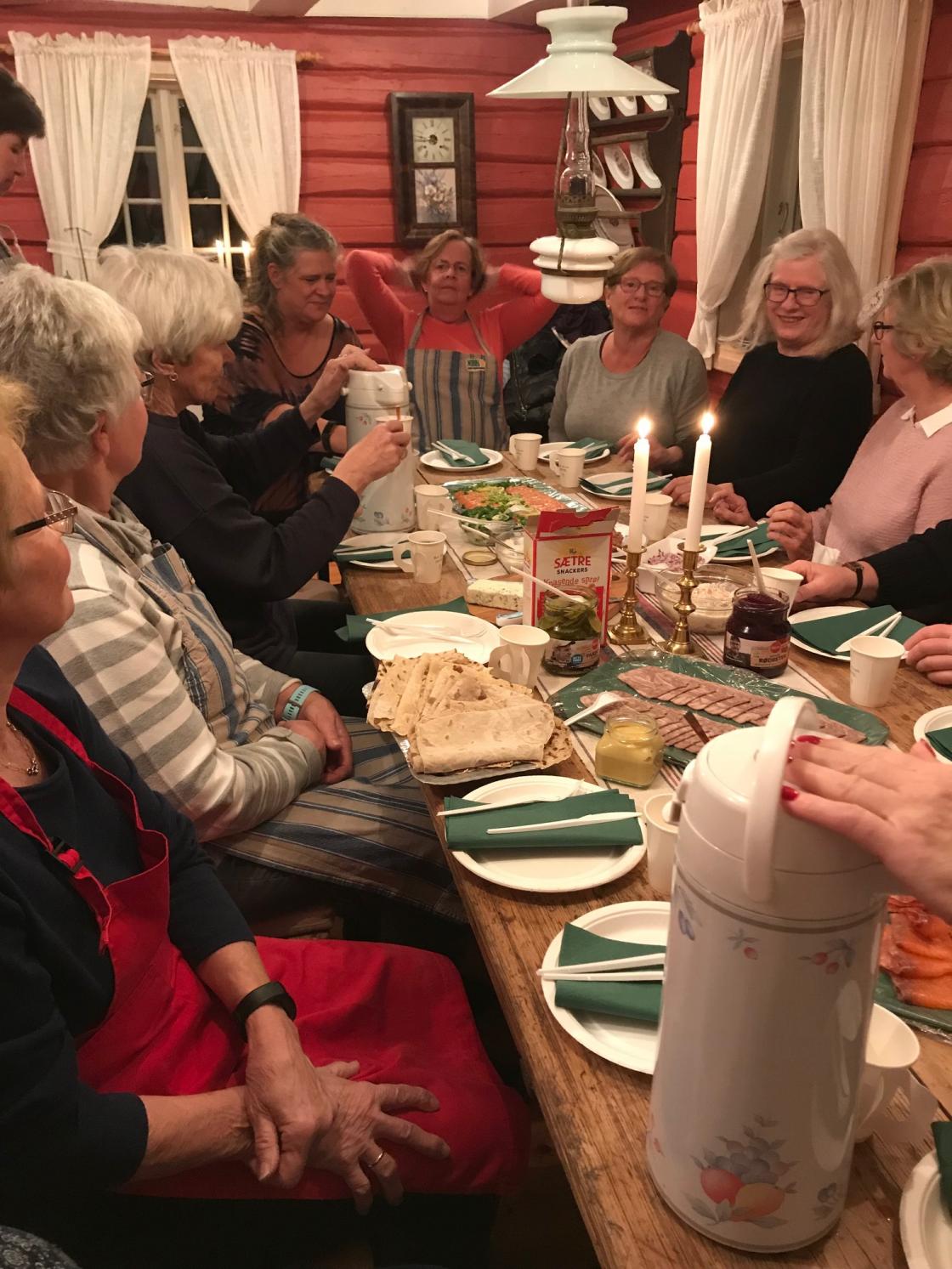 Hyggelig og lærerik kveld i Lybystua med nær 20 damer! Vi lagde potetlefse, flatbrød og nordlandslefse. Prat og god steming, og vi avsluttet med å smake på baksten sammen med et deilig "julebord" med rakefisk, sylte og røkelaks og ost mm. En koselig kveld i novembermørket.