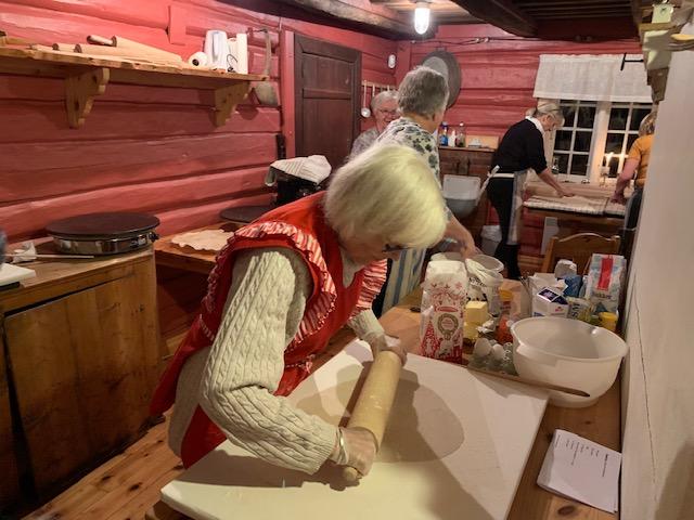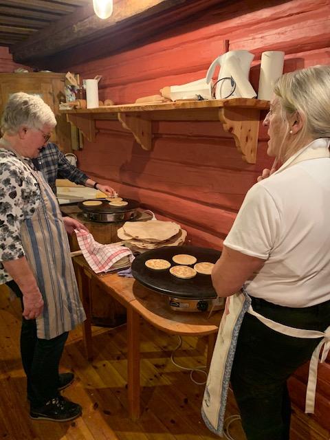 En hyggelig kurskveld med flatbrød og lefser i Lybystua. Vi som var med ble virkelig motivert til å gå i gang hjemme og finne frem kjevla og takka. Takk til lærer Anne Grethe!
