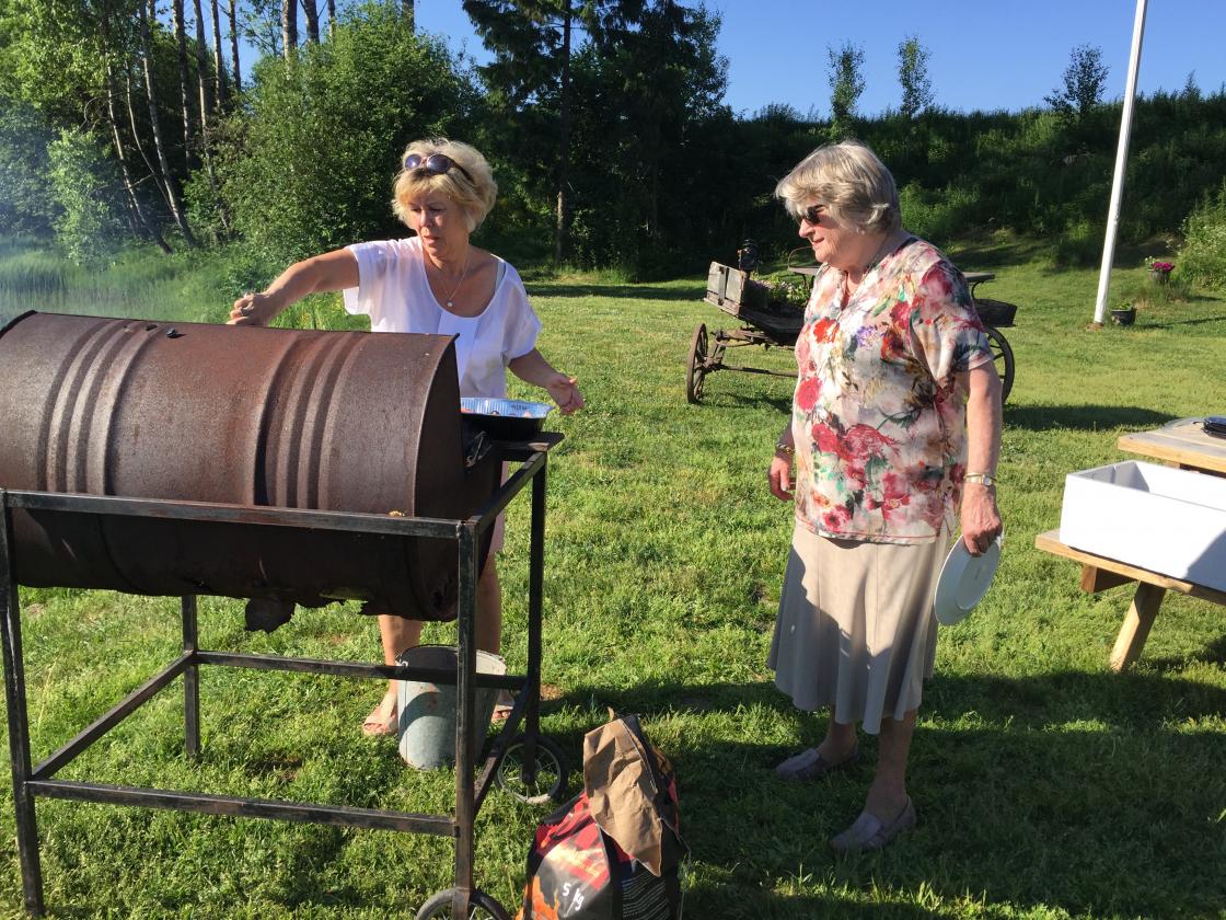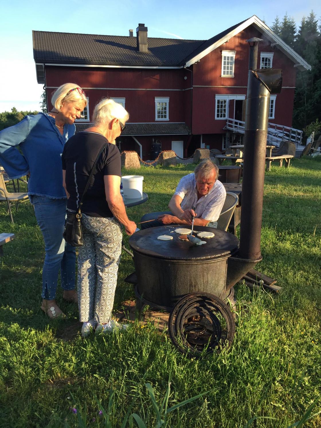 Vi hadde en fantastisk tur til Bakke Mølle i Re mandag 4. juni. Vi fikk fin omvisning av Skjeggerød i mølla og forklaring om hvordan mølla ble drevet og kornet ble malt. Og vi fikk se utstillig av gammelt kjøkkenutstyr. Etterpå sørget kjøkkekomiteén for matlaging og servering av grillmat med tilbehør. Svelene ble stekt på steinplate av Skjeggerød selv.