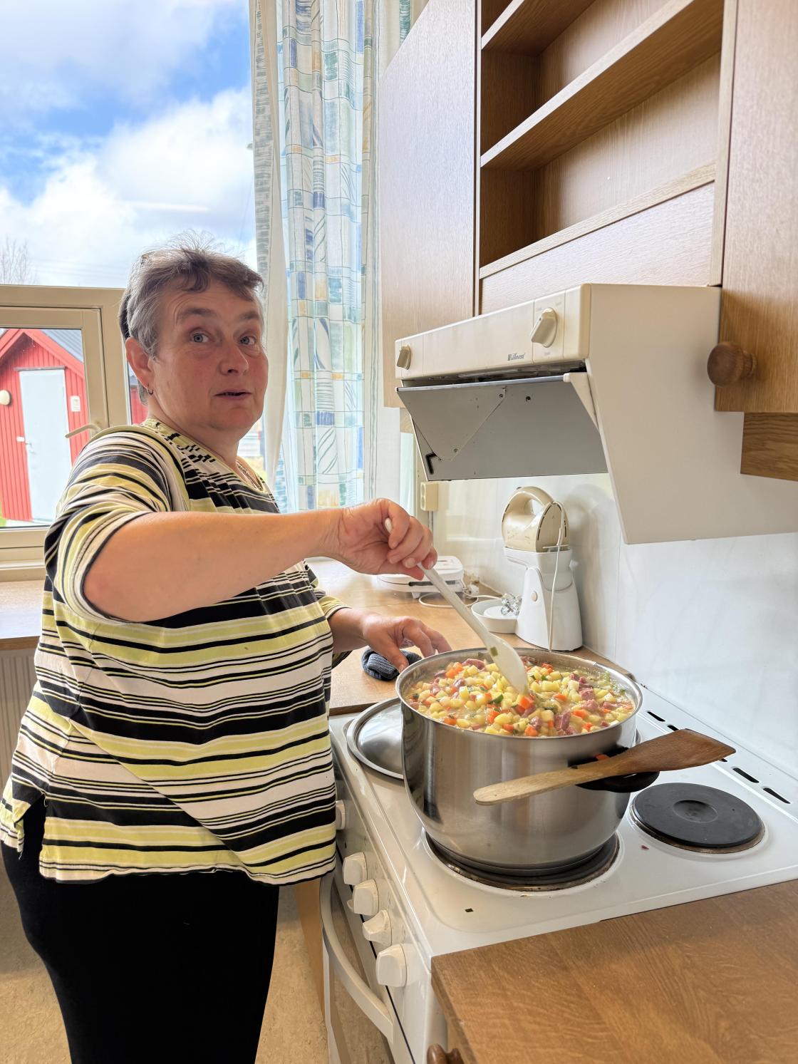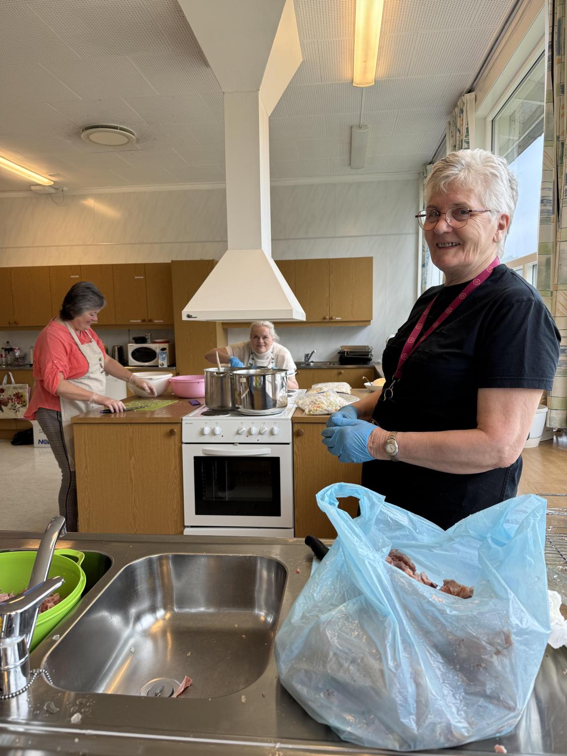 Vi hadde basaren på en søndag, og kokte lapskaus. Menyen bestod ellers av pølser og lapper. Vi kuttet ut kakene. Så mye ros for maten, har vi aldri opplevd før. Lapskausen var kjempegod, og Anne’s lapper er de beste . I år hadde Berit laget glutenfrie lapper, så de fleste var ivaretatt i matveien.
