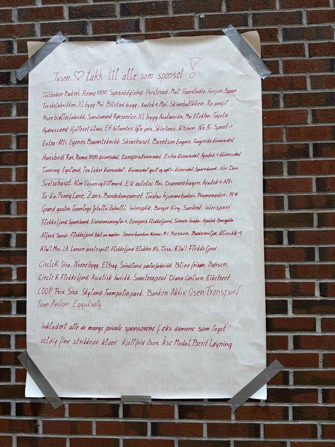 TUSEN TAKK TIL HELE BYGDA,OG TIL ALLE SOM HAR SPONSET OSS MED GEVINSTER .