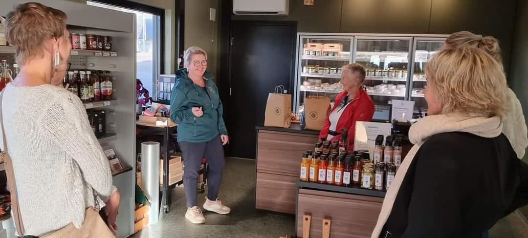 Handelen gjekk ivrig i butikken etterpå, der ein får kjøpt mange ulike ostar frå Ystepikene, samt olje, honning, poteter, syltetøy og keramikk, alt produsert lokalt på Jæren.