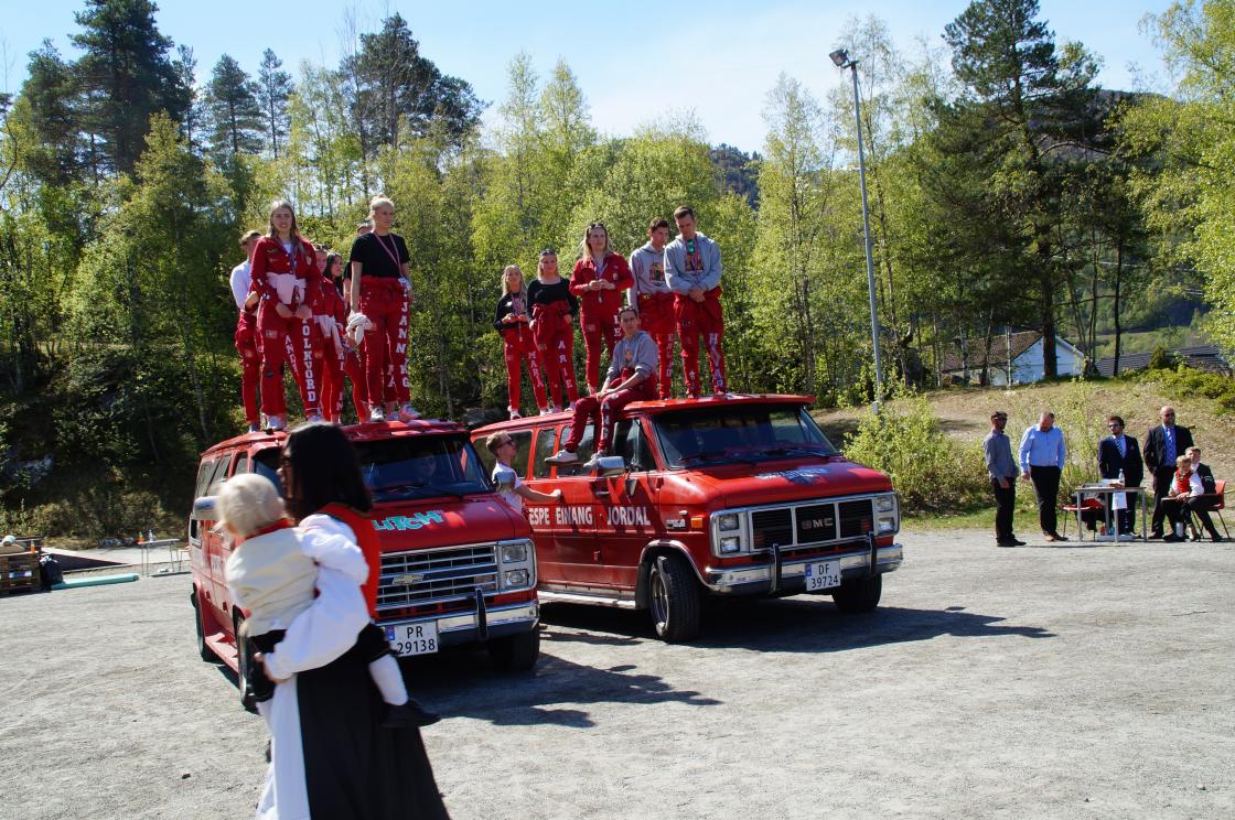 Då me ikkje hadde musikklag her i år, hadde 7.klasse øva seg på trommer og hjalp oss og halda takten i toget. Dei var flinke!