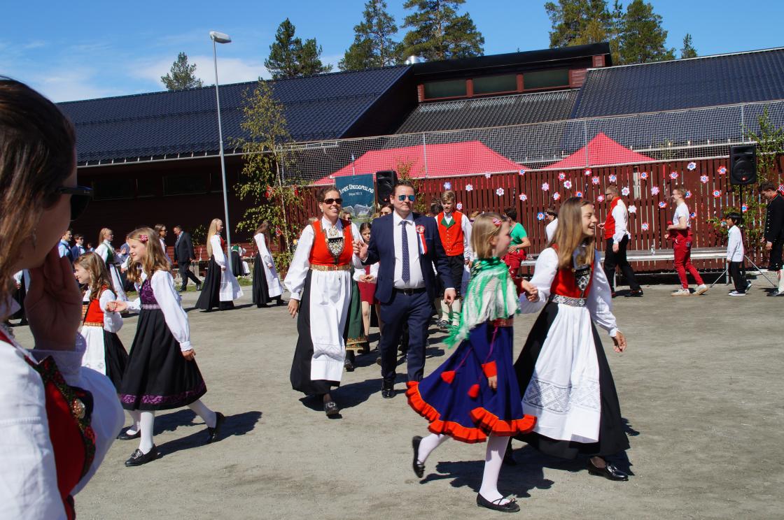 Det er 7.klasse (avgangsklassen) sammen med foreldre, besteforeldre, som kvart år lager i stand til den store dagen. Dei ønska oss velkomen og fortalte om tida si her på Skare Skule.