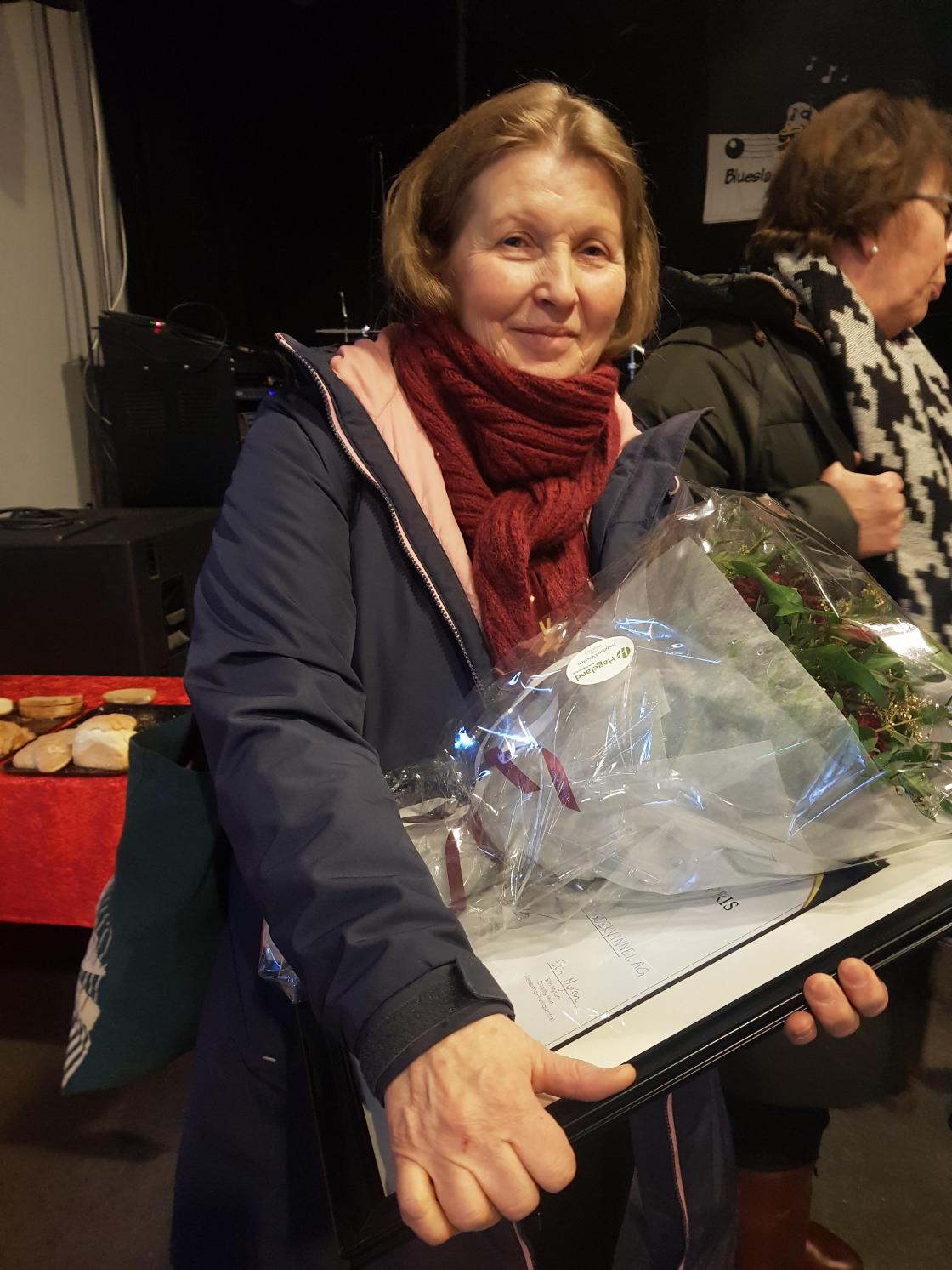 Leiar Gunvor S.Seljestad mottok pris og takka for den gledelige og overraskande prisen som laget satte stor pris på.