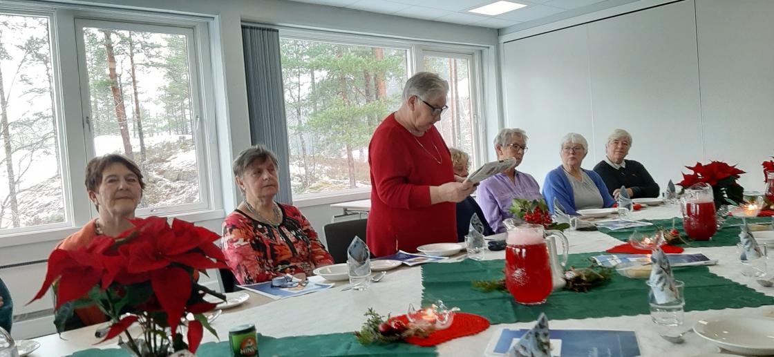Leiaren vår Gunvor ønska velkommen og fortalte litt fra førjulstemning i Stavanger. Ho hadde også laga den deilige ripssafta me fikk til grauten.